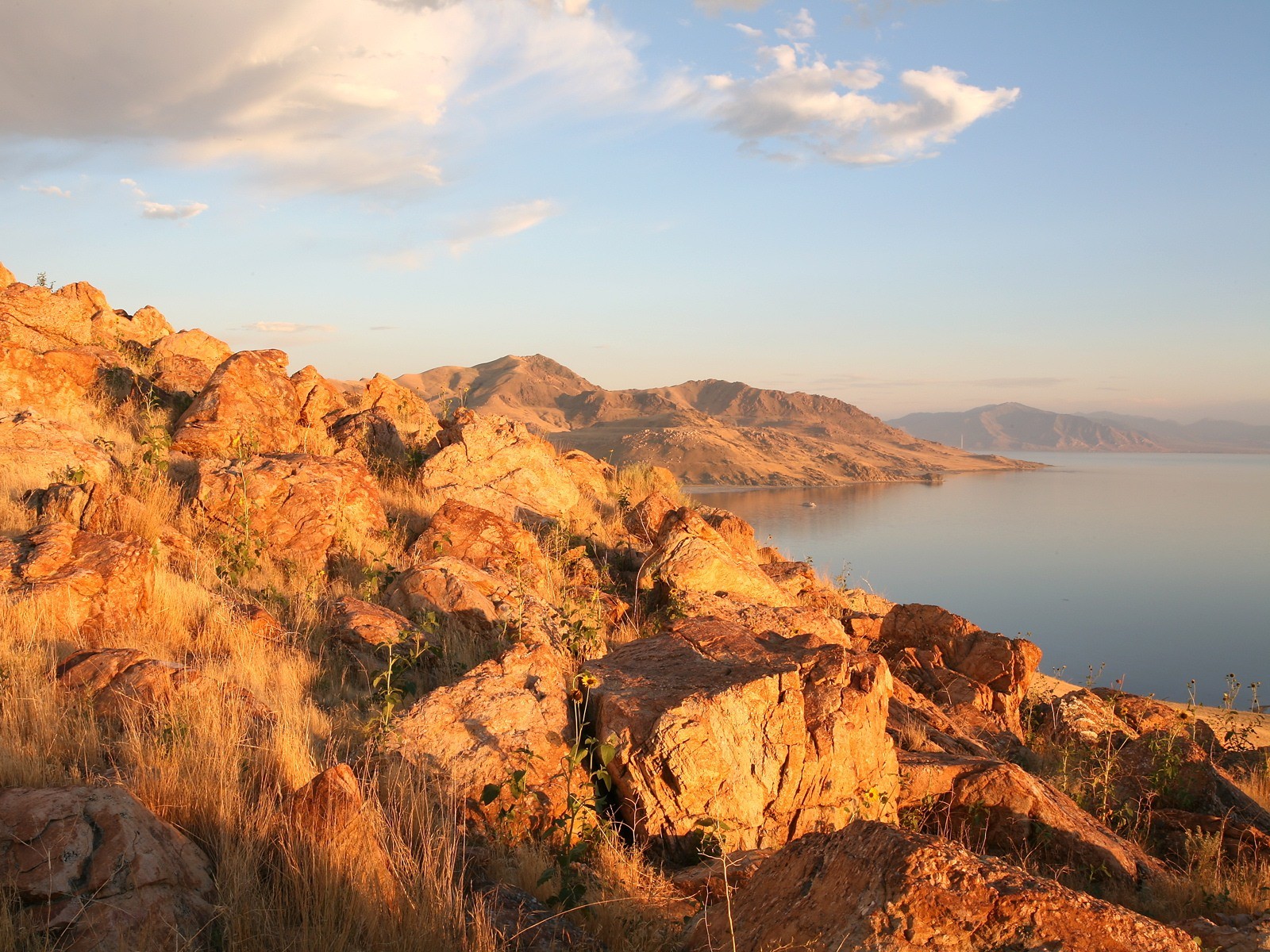 Wonderful mountain lake at sunset