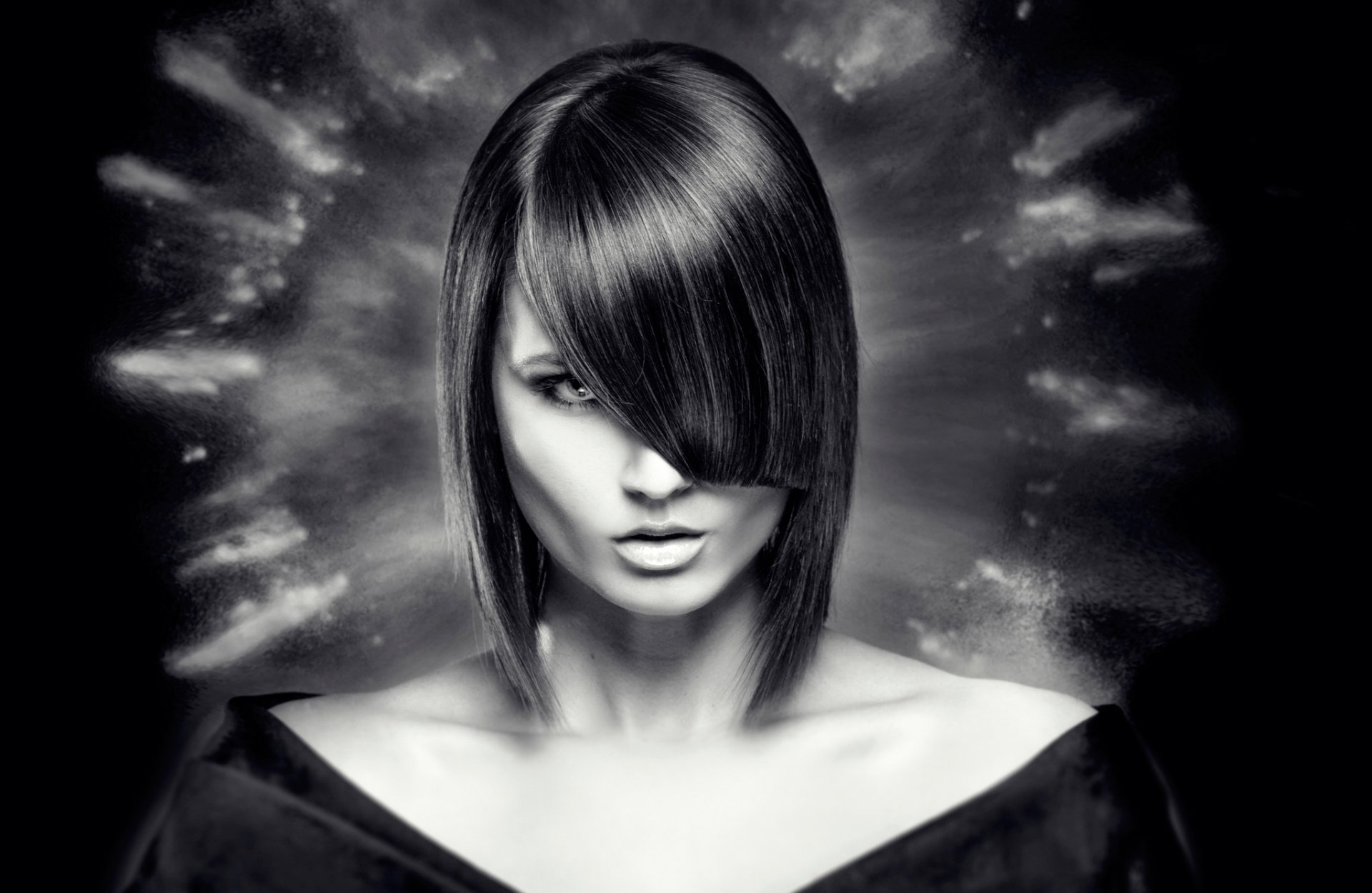 Drawing of a girl with long hair with a pattern of flowers in the background