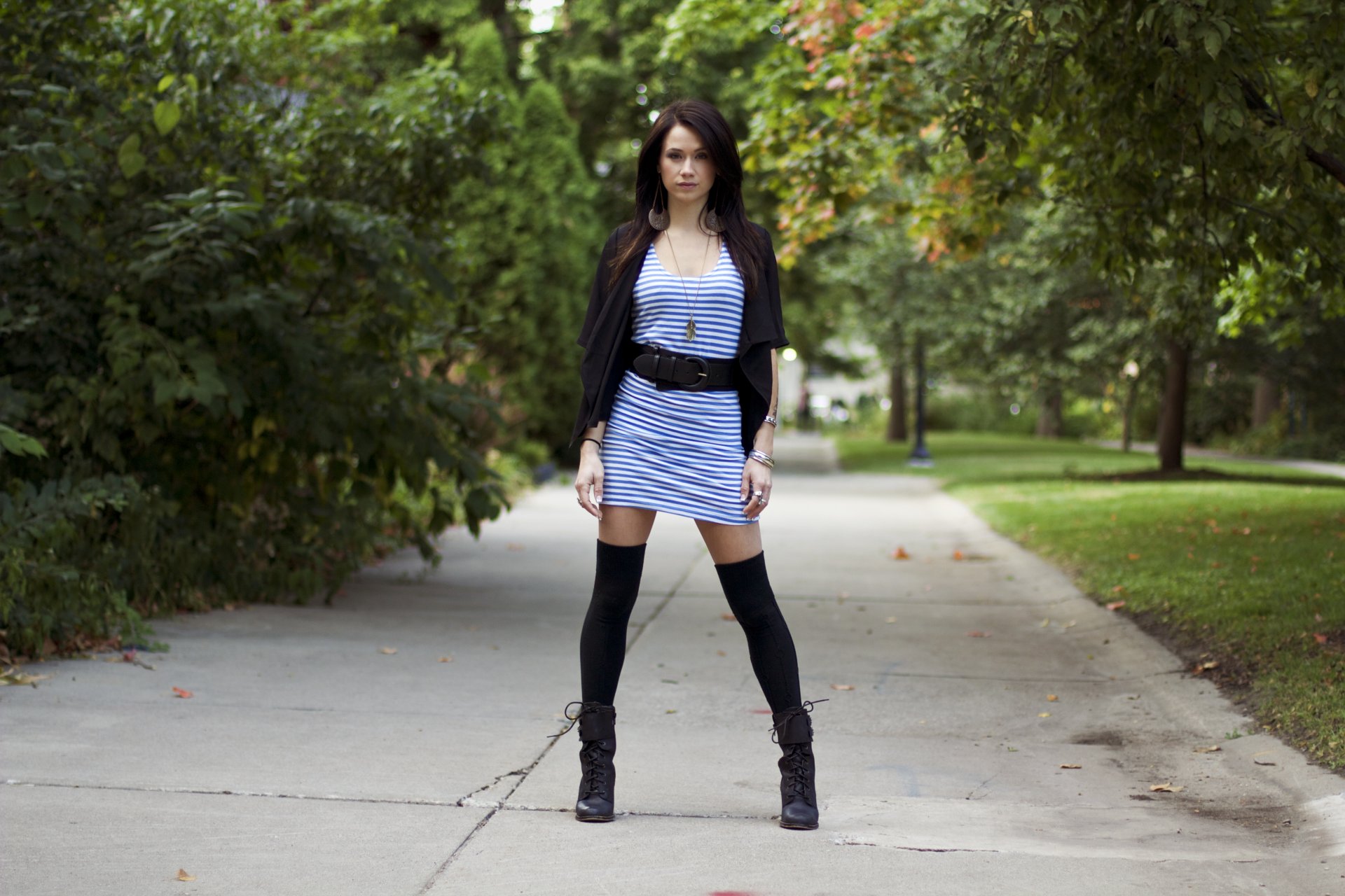 Cute brunette in a vest dress