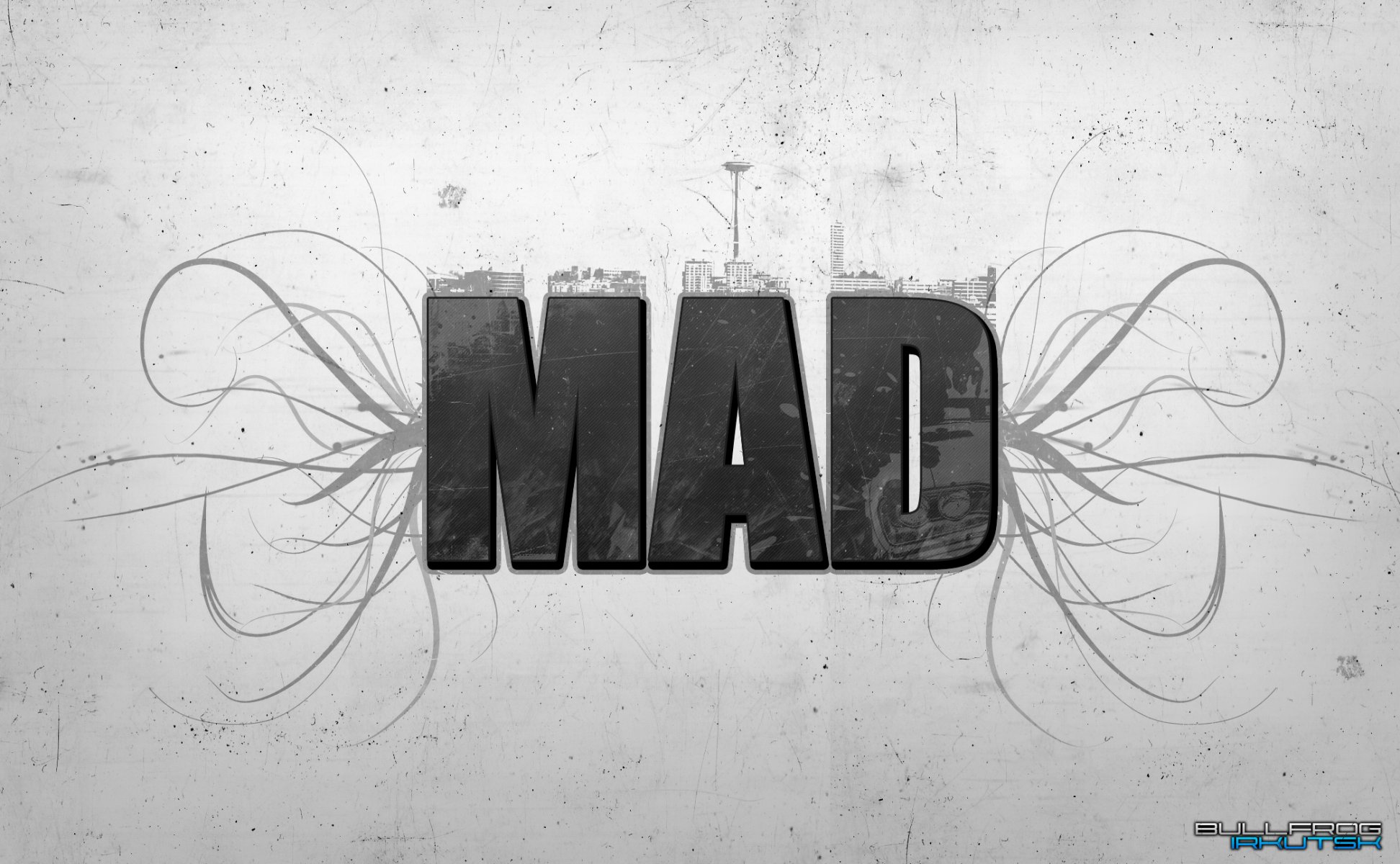 Mad in black and white color scheme
