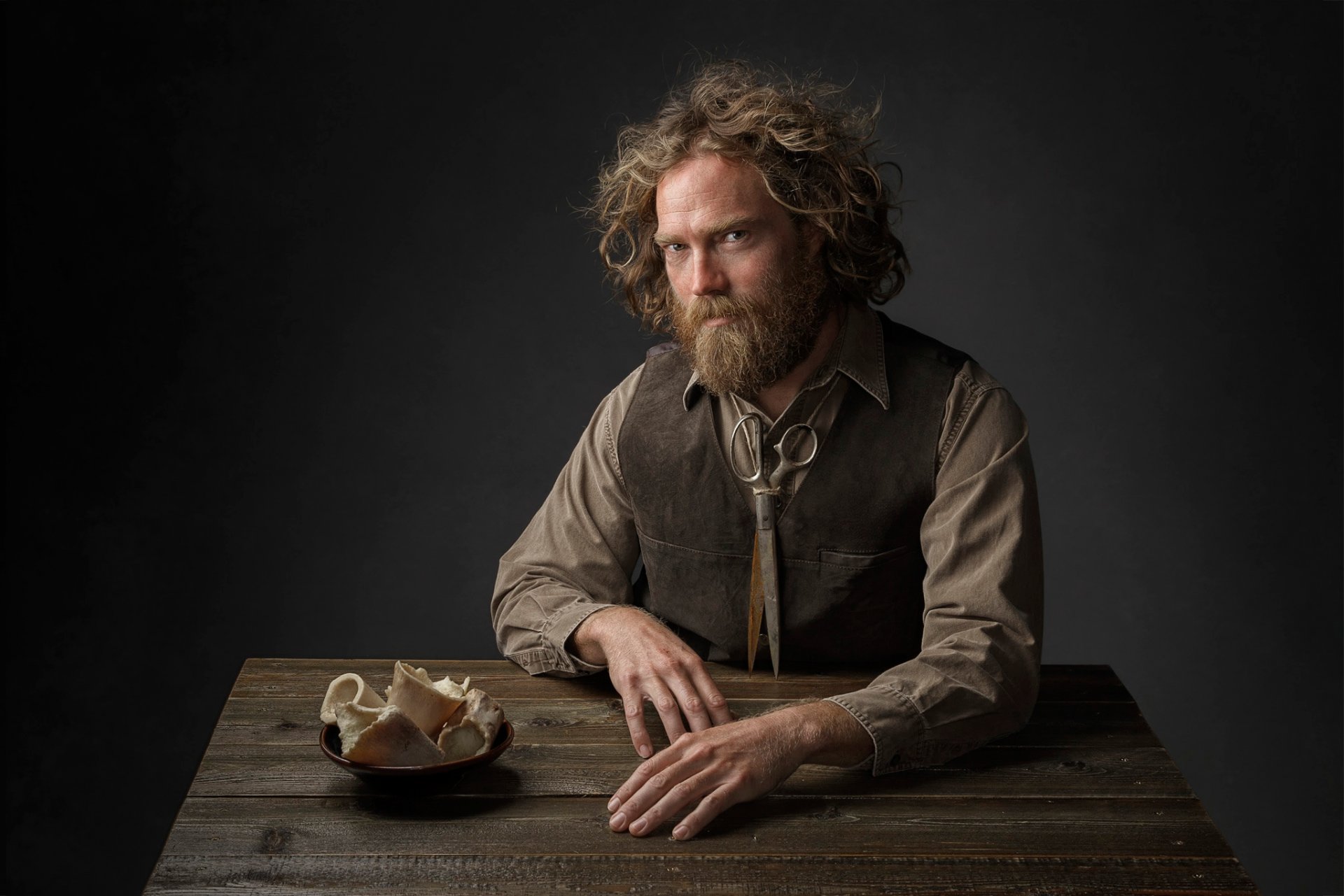 Mountain man at the table, look