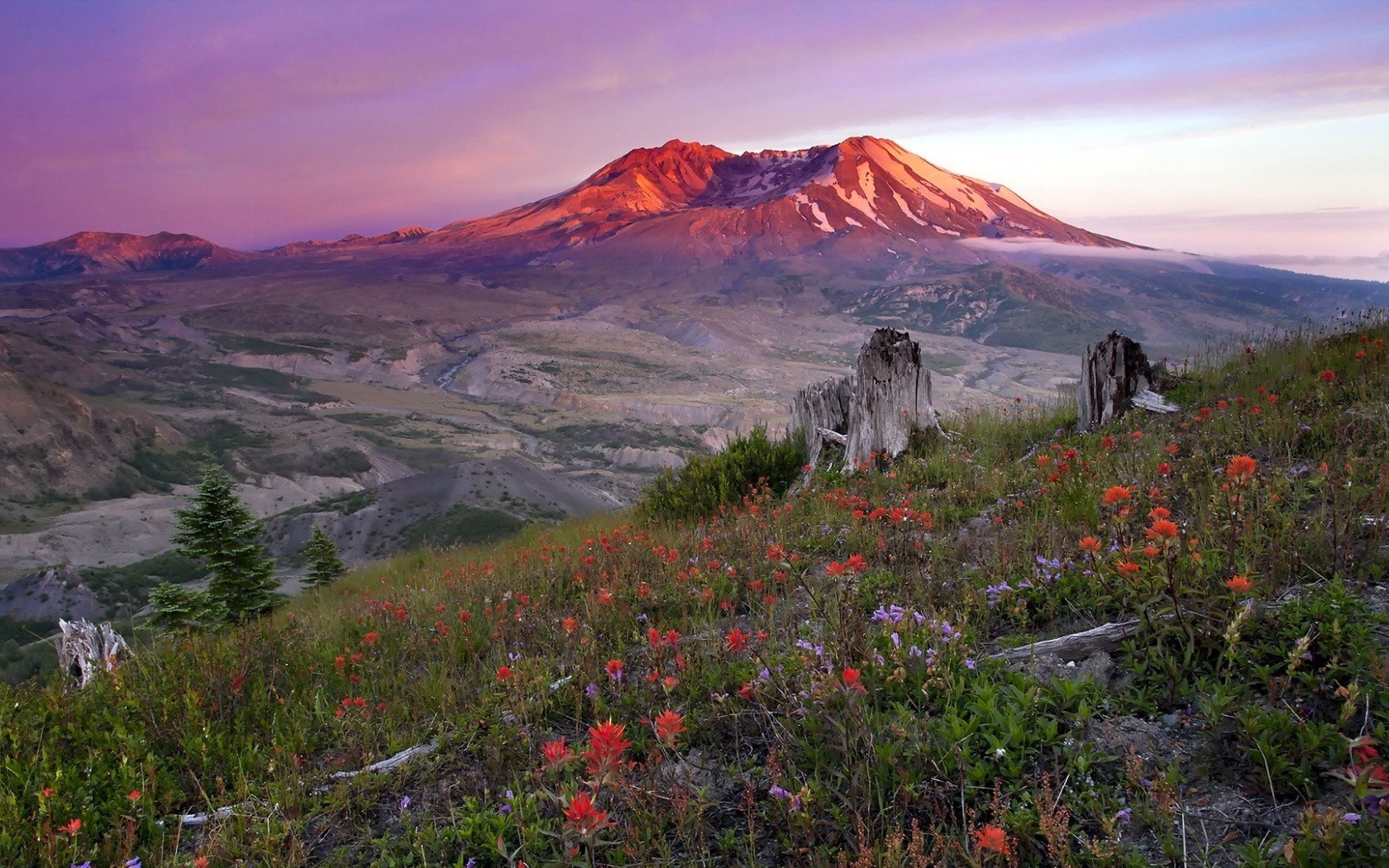 Beautiful landscape, sunset and mountains