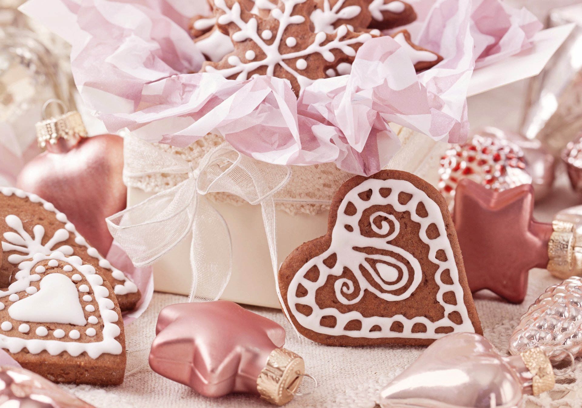 New Year's festive atmosphere in delicate light blue tones with Christmas cookies ice cream and a winter warm hat