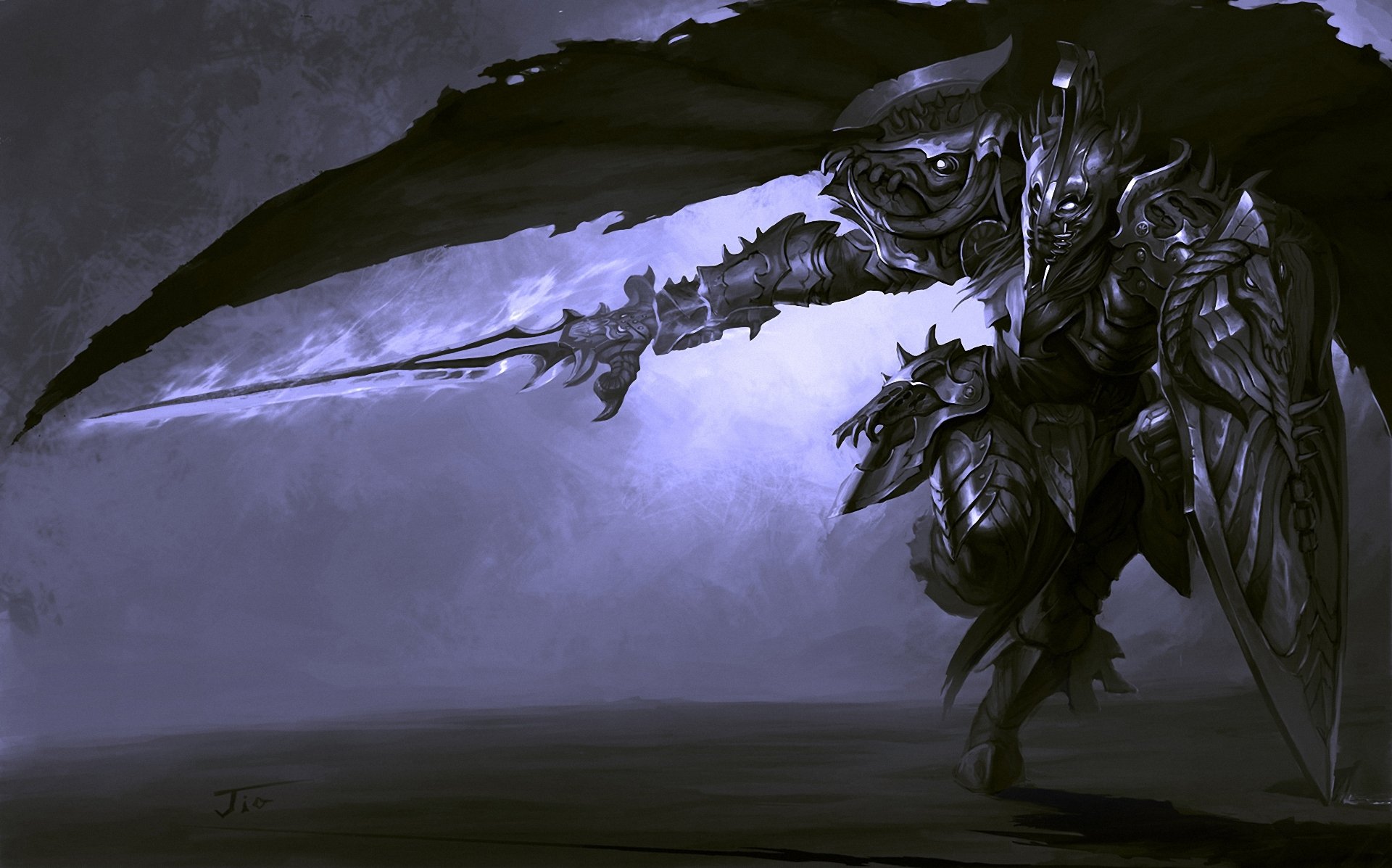 Dragons from skyrim fight with a warrior in a helmet on a rock