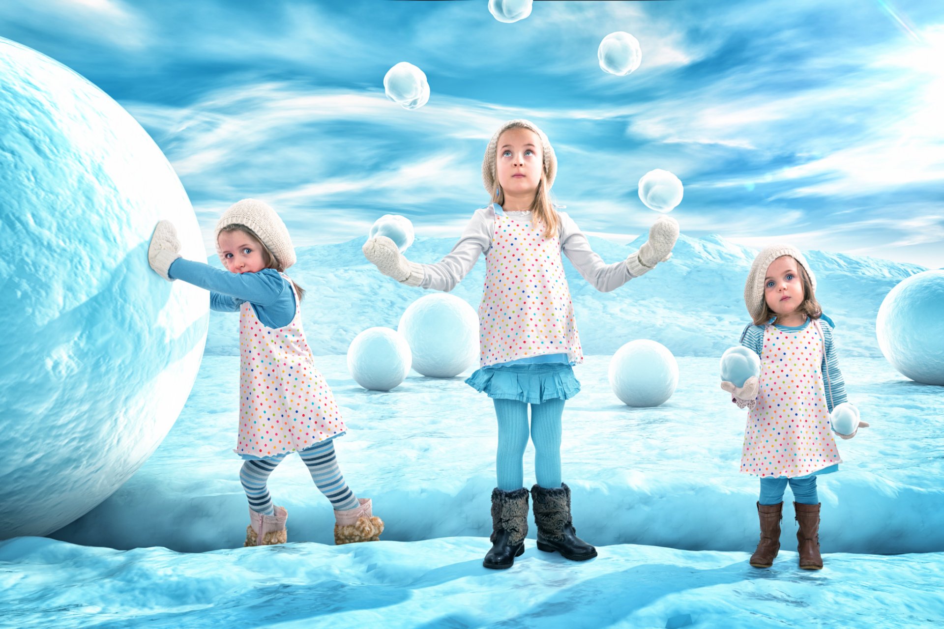 Girls make balloons in winter