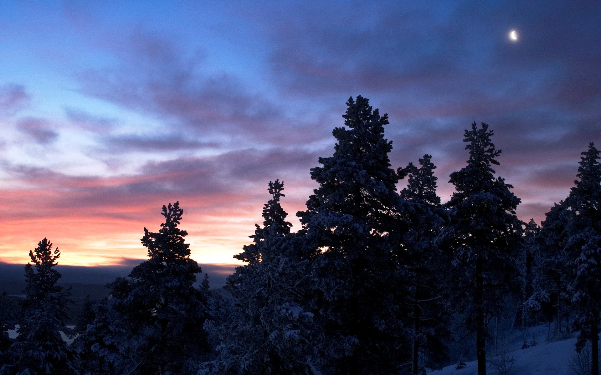 Winter forest shrouded in moonlight