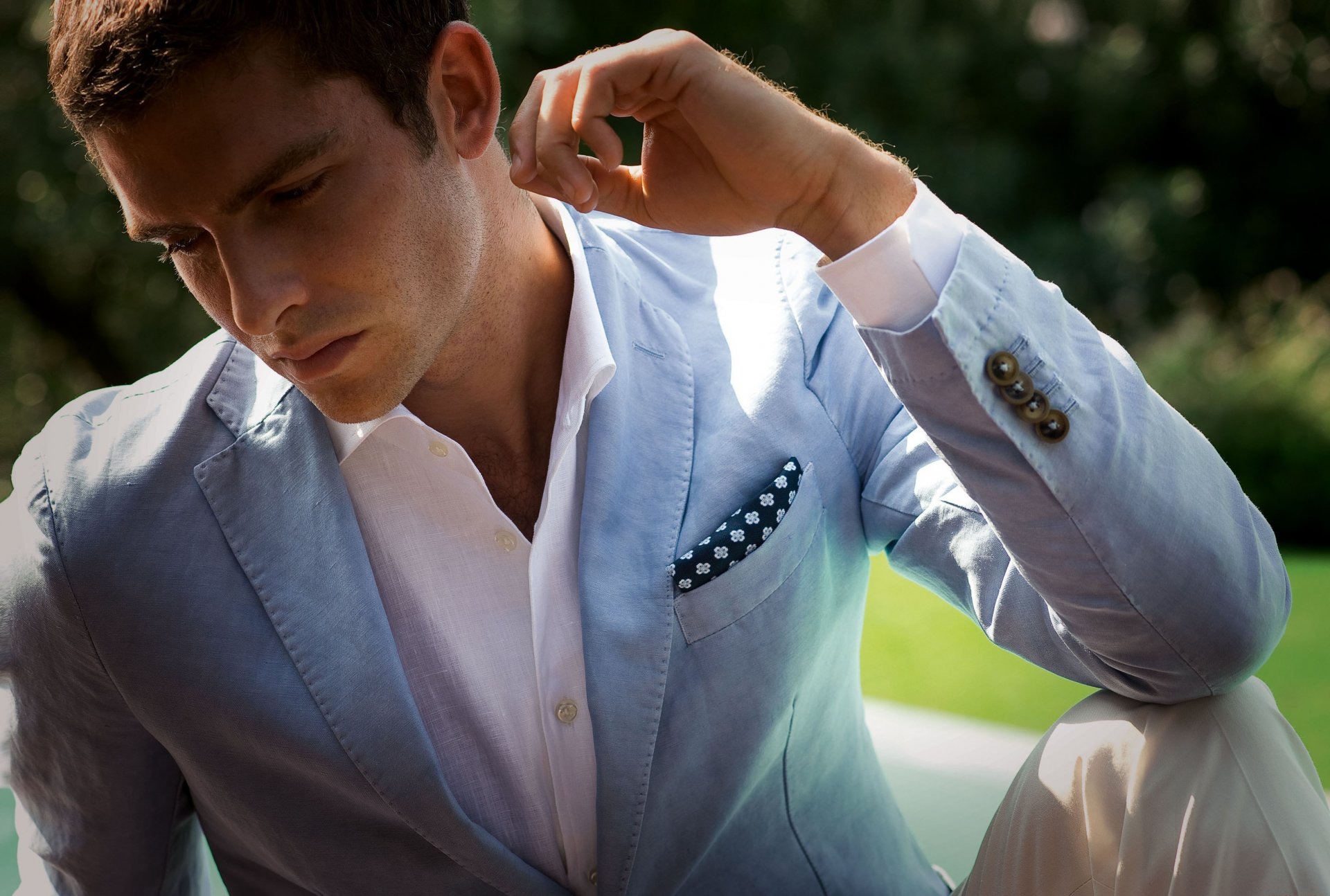 Pal Zileri poses in a suit with a blue jacket