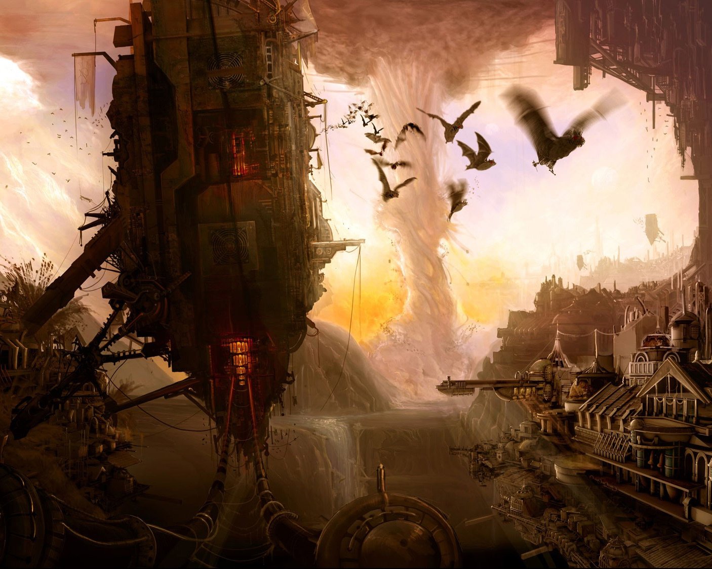 The passage is closed in the distance a huge tornado