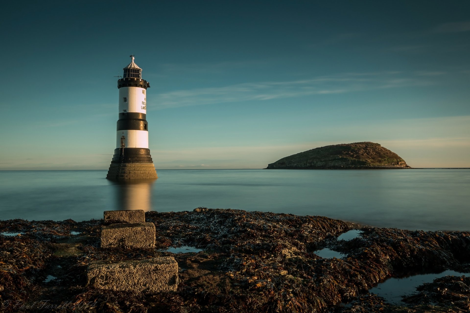 Lighthouse on the rock water Reflection of the lighthouse stones