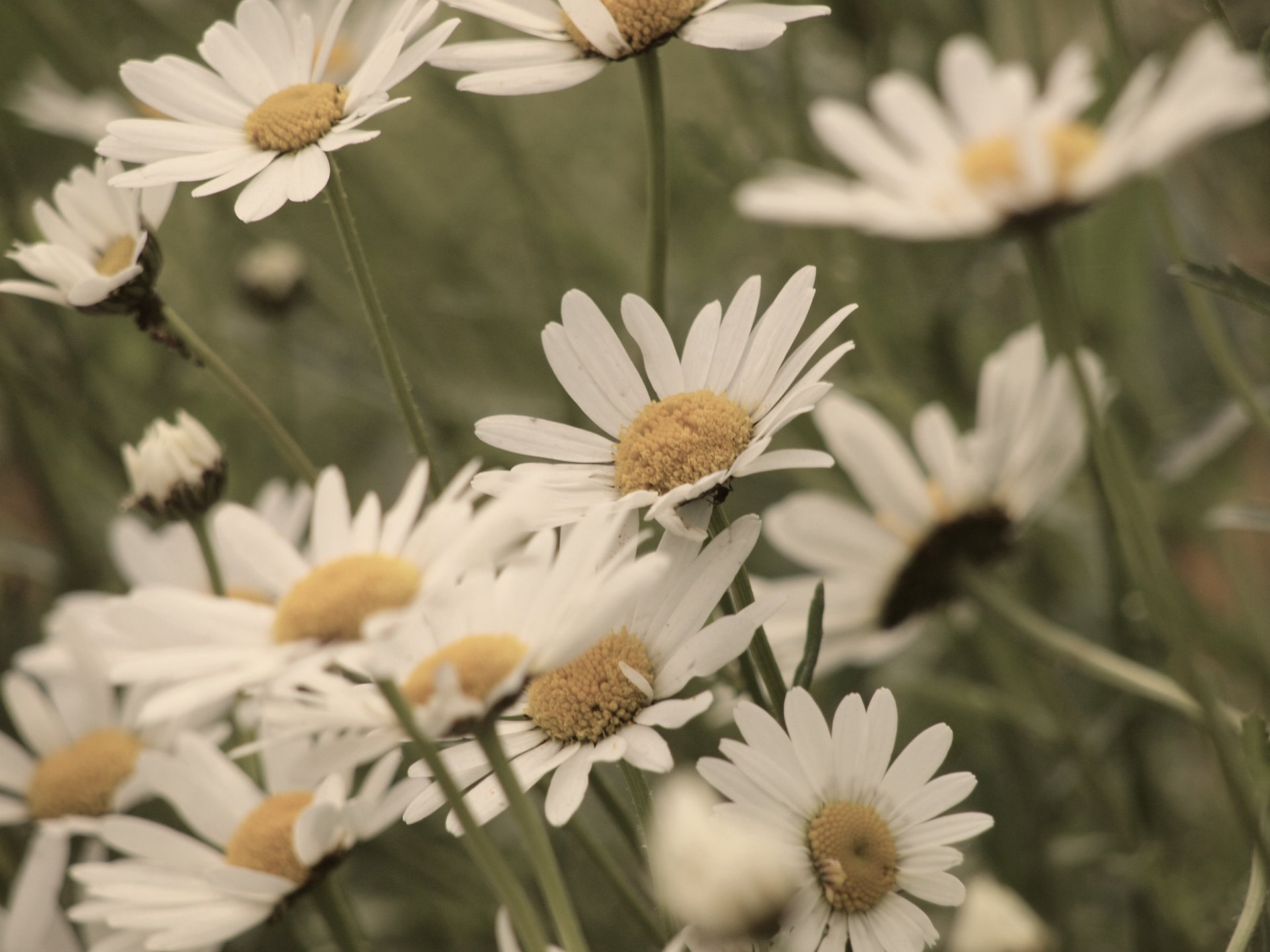 A cart with green grass and bright flowers growing on it against the background of the night sky illuminated by moonlight