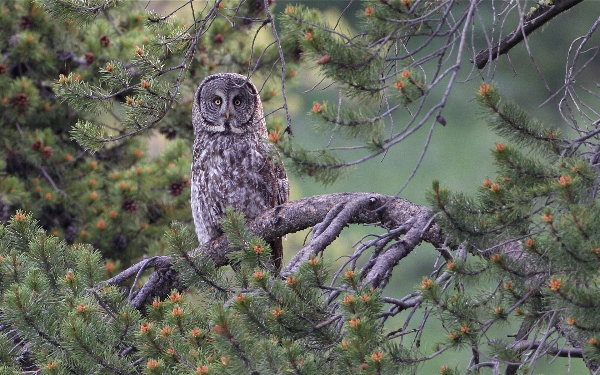 Slava is sitting on a pine branch
