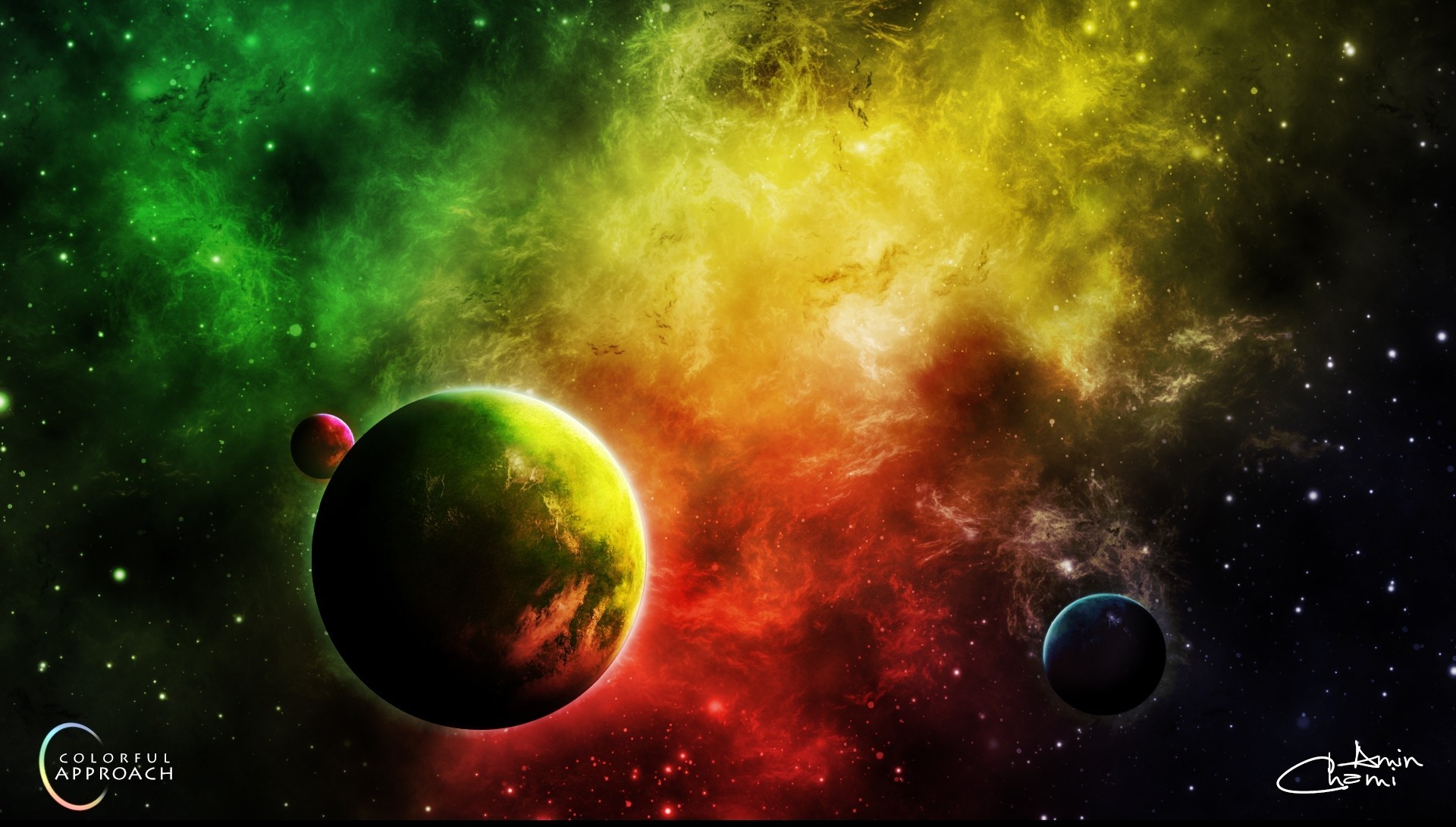 Beautiful 3D art of the cosmos on the background of a red nebula. Desktop picture
