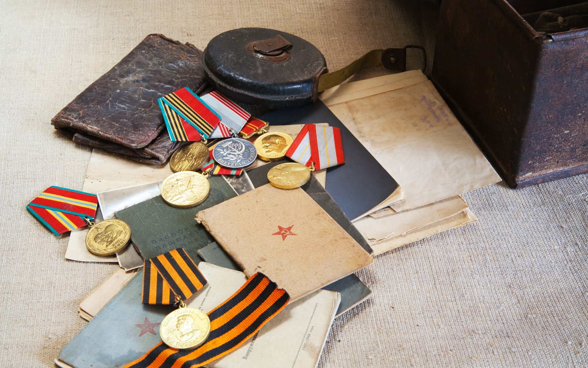 Tank of the world war ii period on the green grass next to the trees against the sky