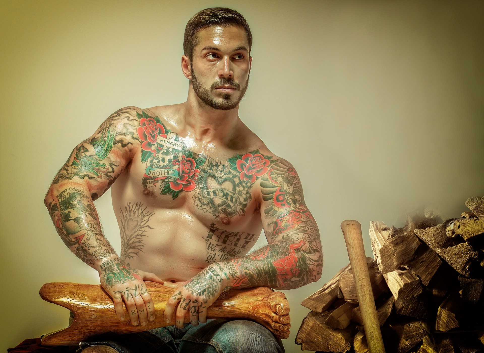 Tattooed jock with a prosthesis