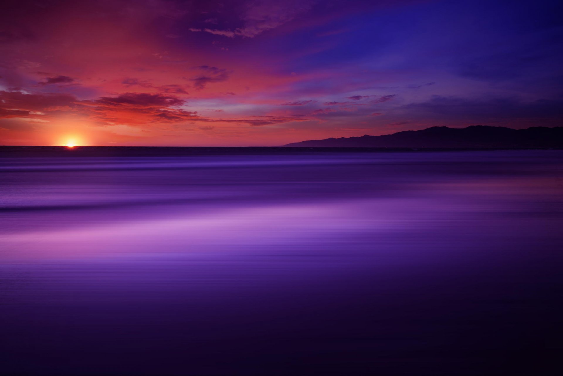 Hills covered with greenery and a blue expanse of water against an azure-misty sky