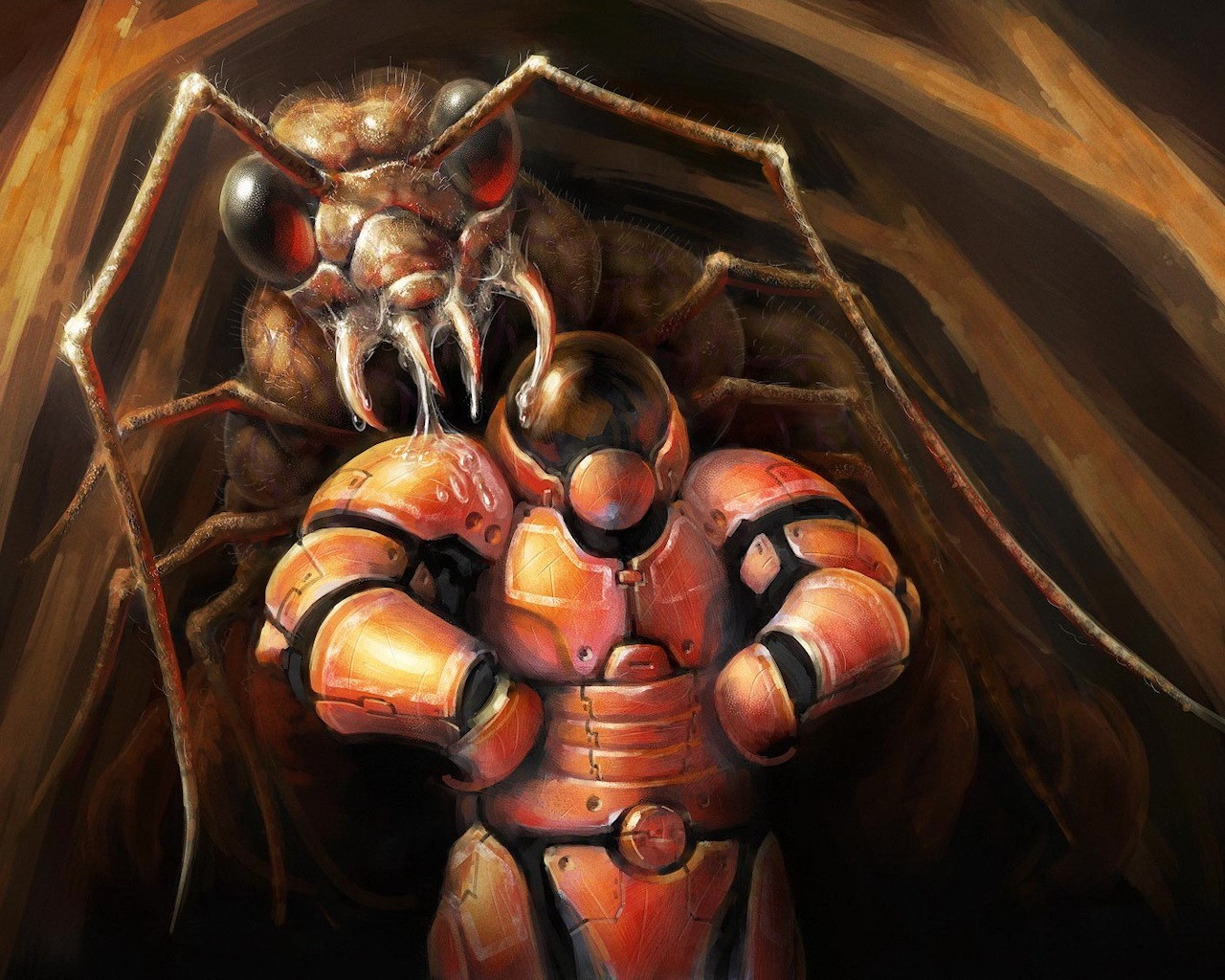 An astronaut and a monster beetle. Space Rangers