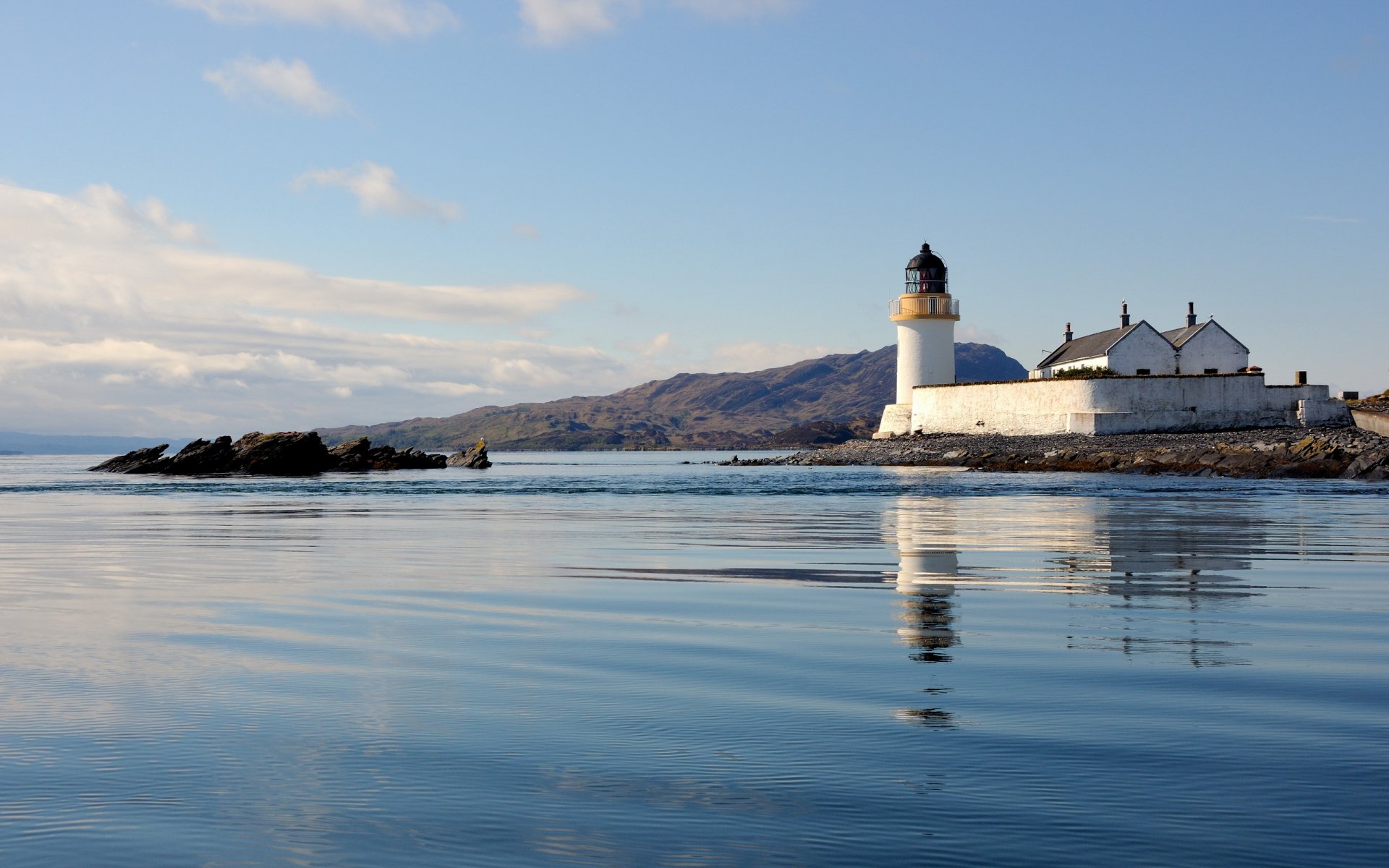 Lake with a lighthouse in Michigan on the background of a bright sunset