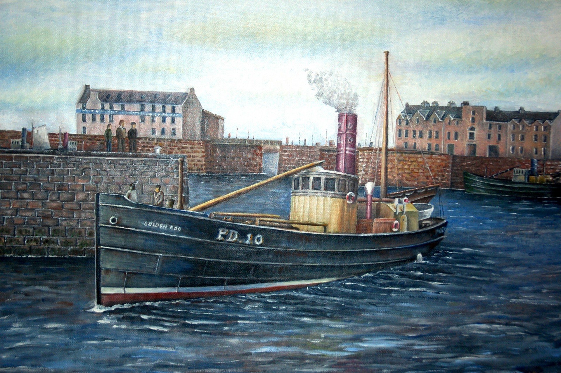 Painting on canvas fishing harbor Scotland