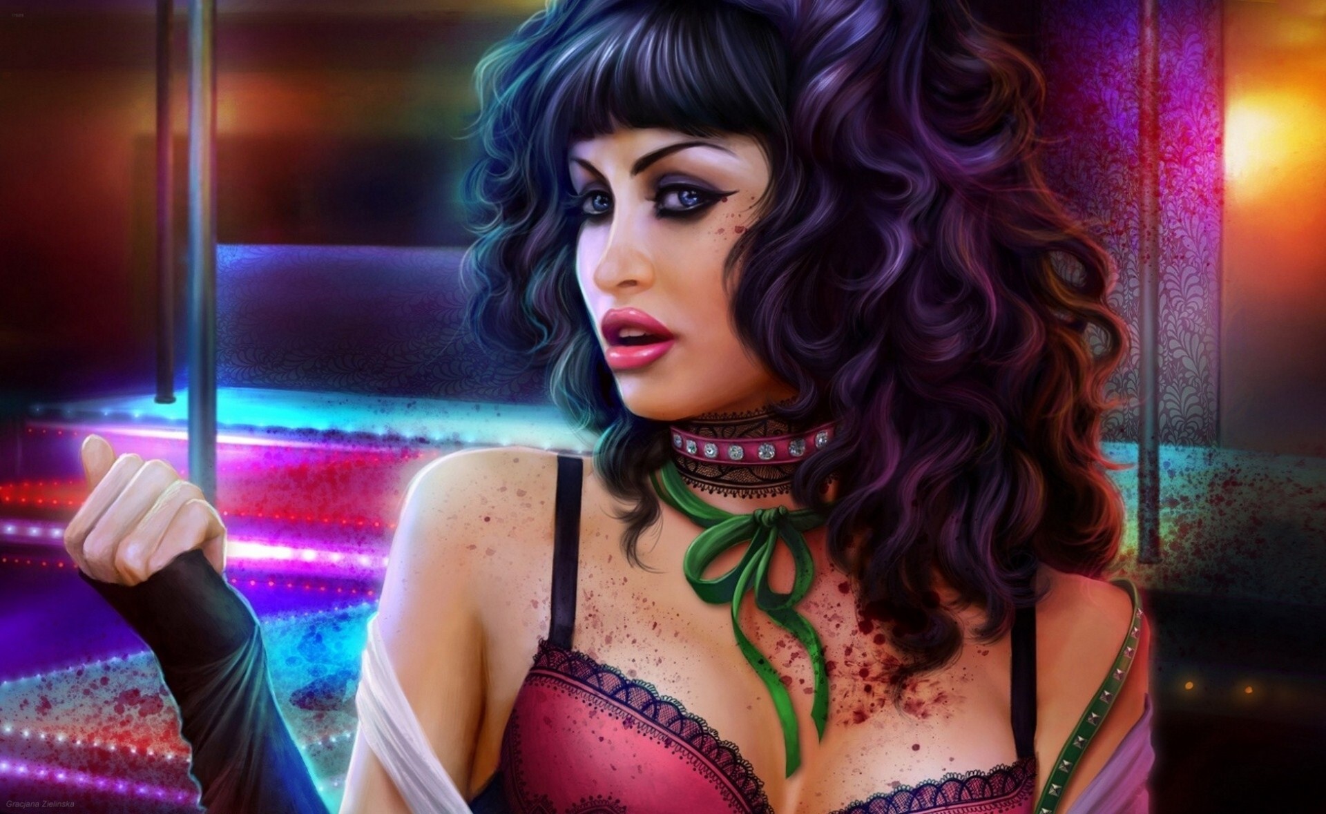 A man in a gas mask stained with blood on a black background