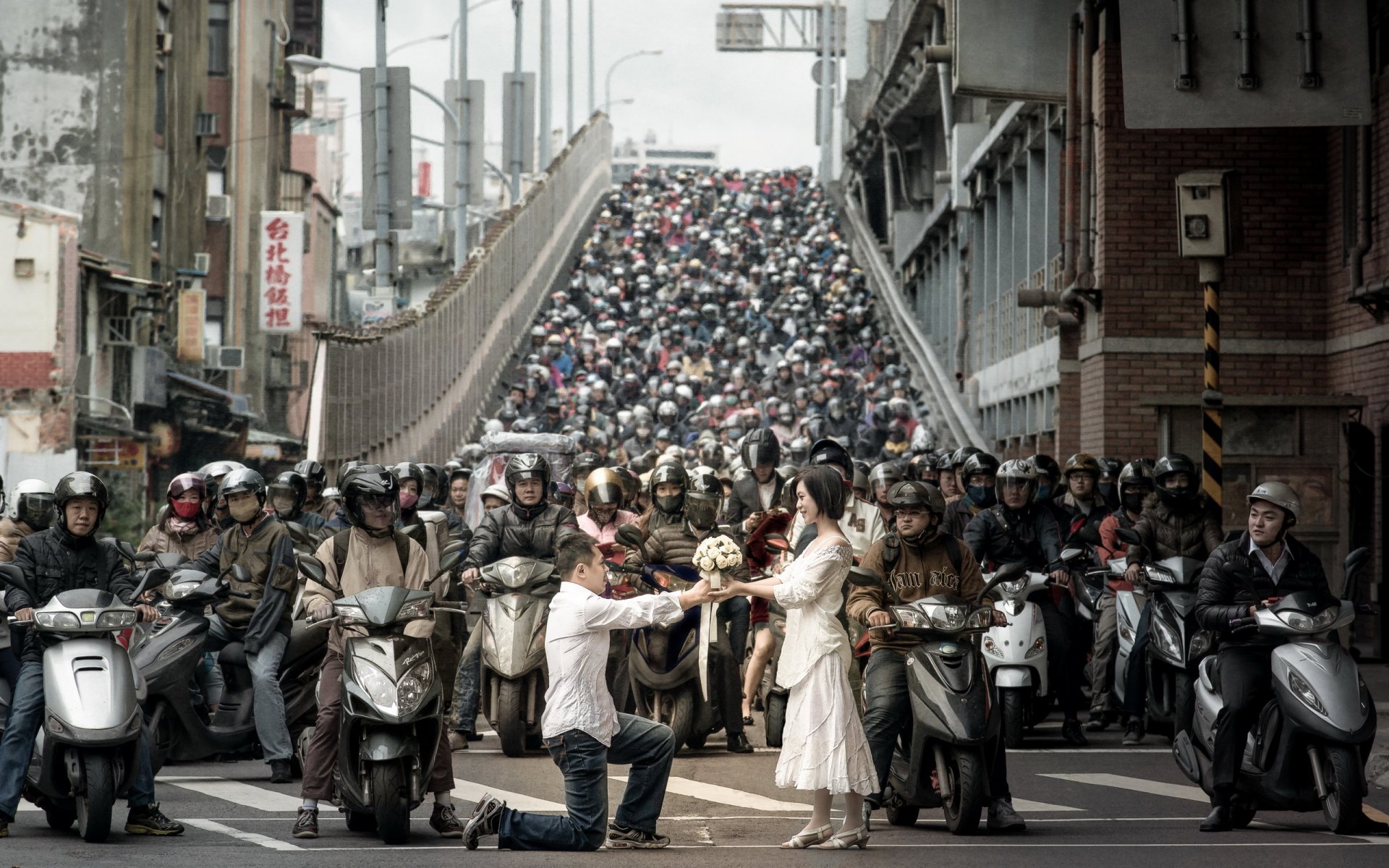 A girl with long hair stretches out her hand to the flaming mouth of the dragon