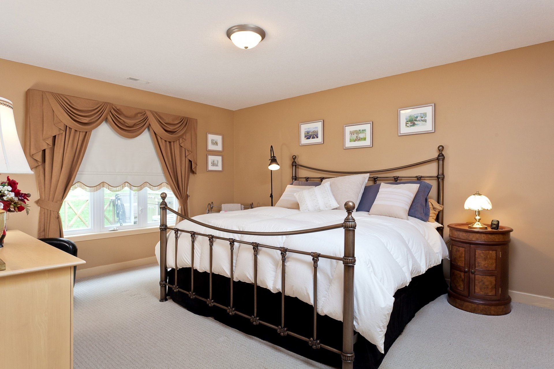 Living room with a white sofa and a black floor lamp with frames on the wall