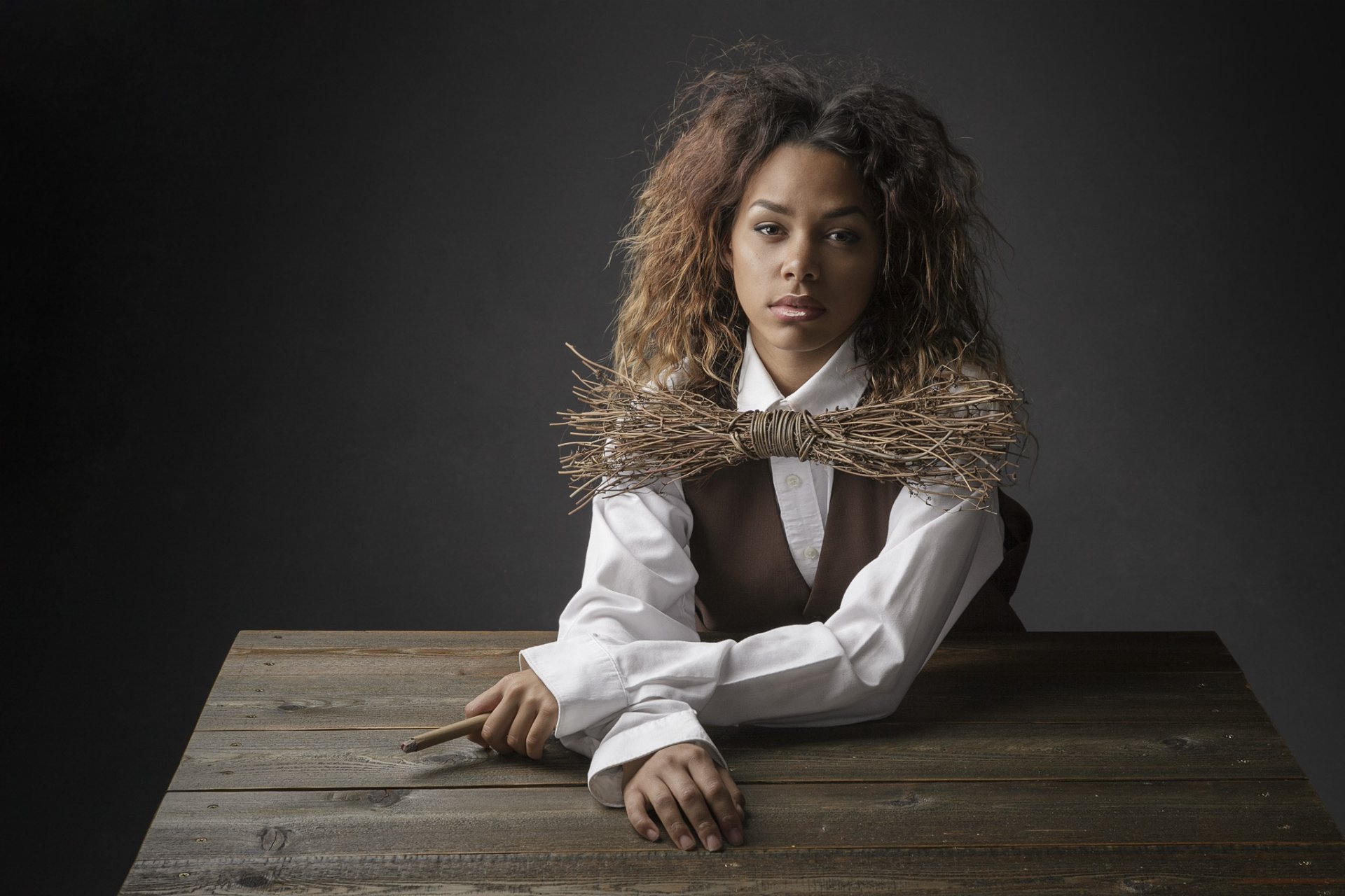 A man in a suit leads a horse with a girl on horseback , a stylish couple