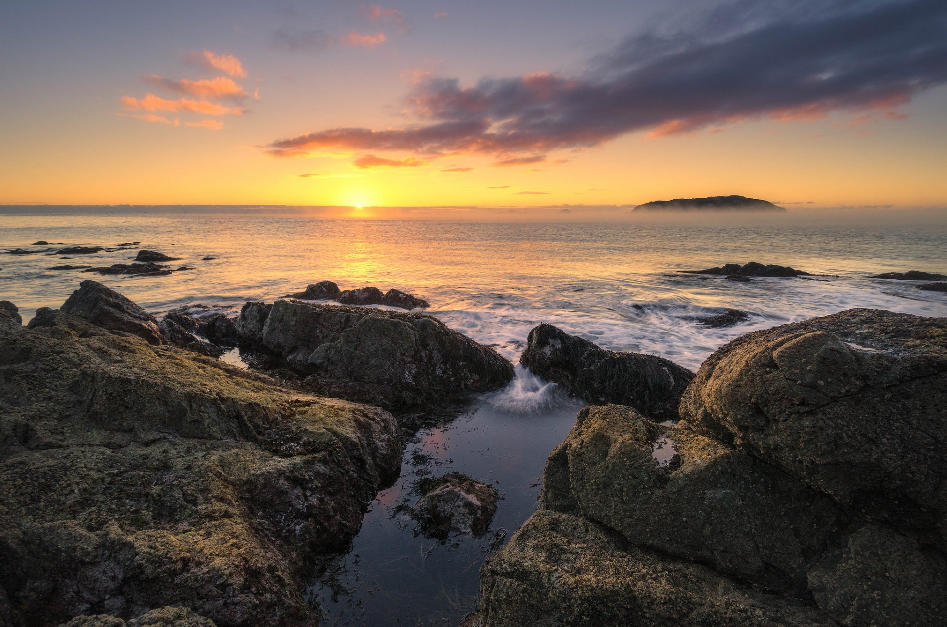 Dawn in New Zealand by the ocean