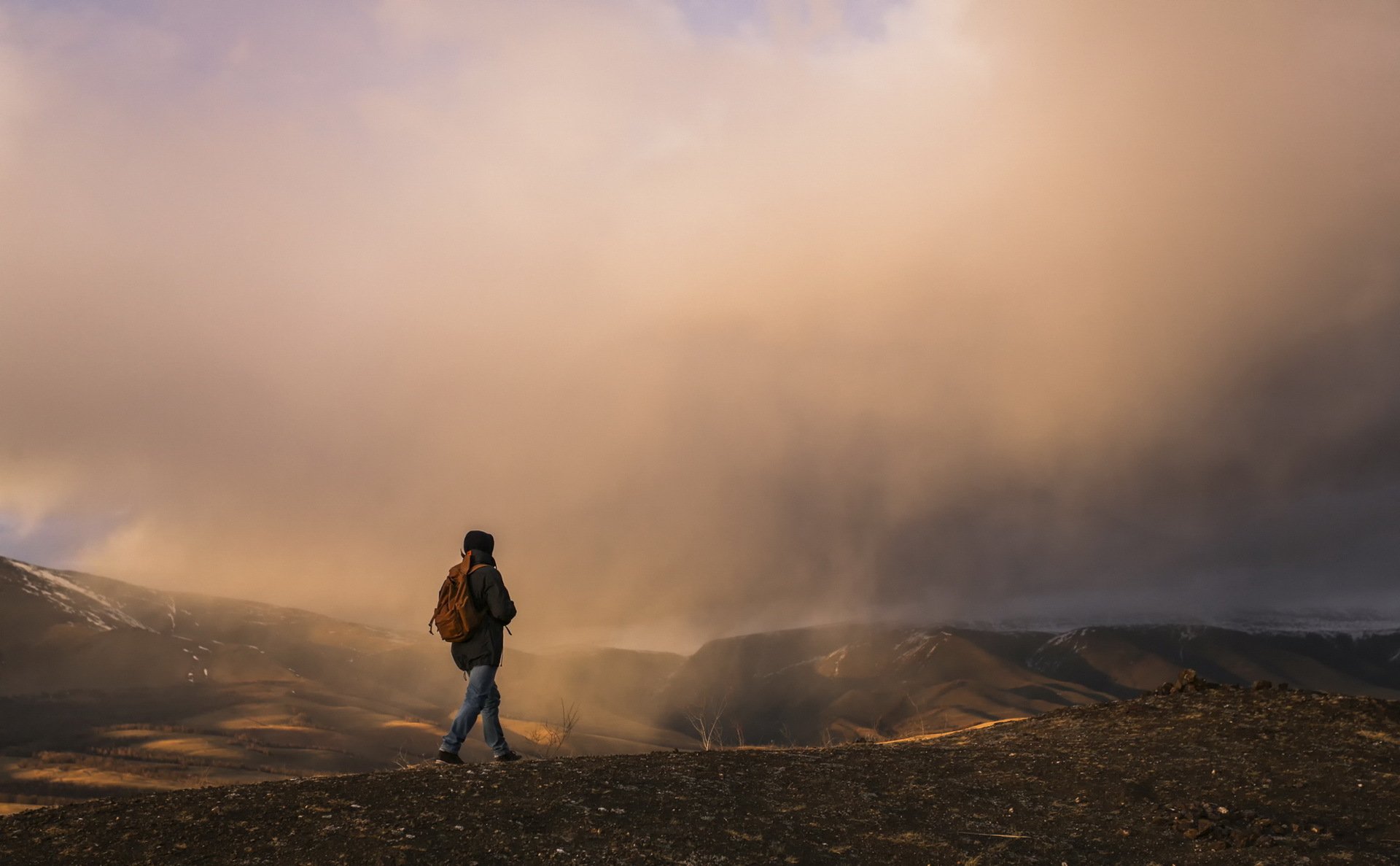 Art is a traveler in a magical valley among rocks with a fortress in the distance