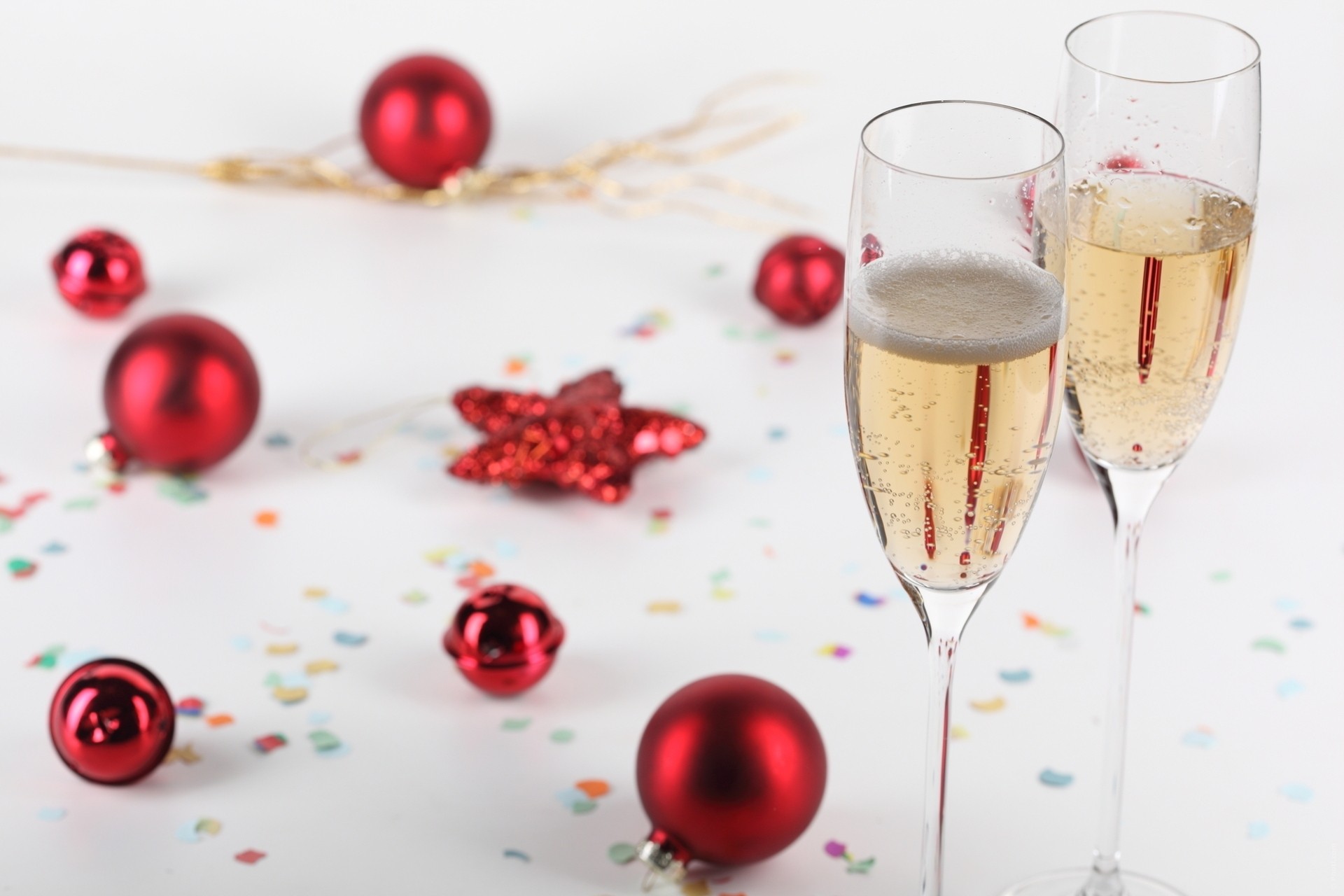 Christmas tree, Santa Claus hat and two glasses of champagne on the ocean beach