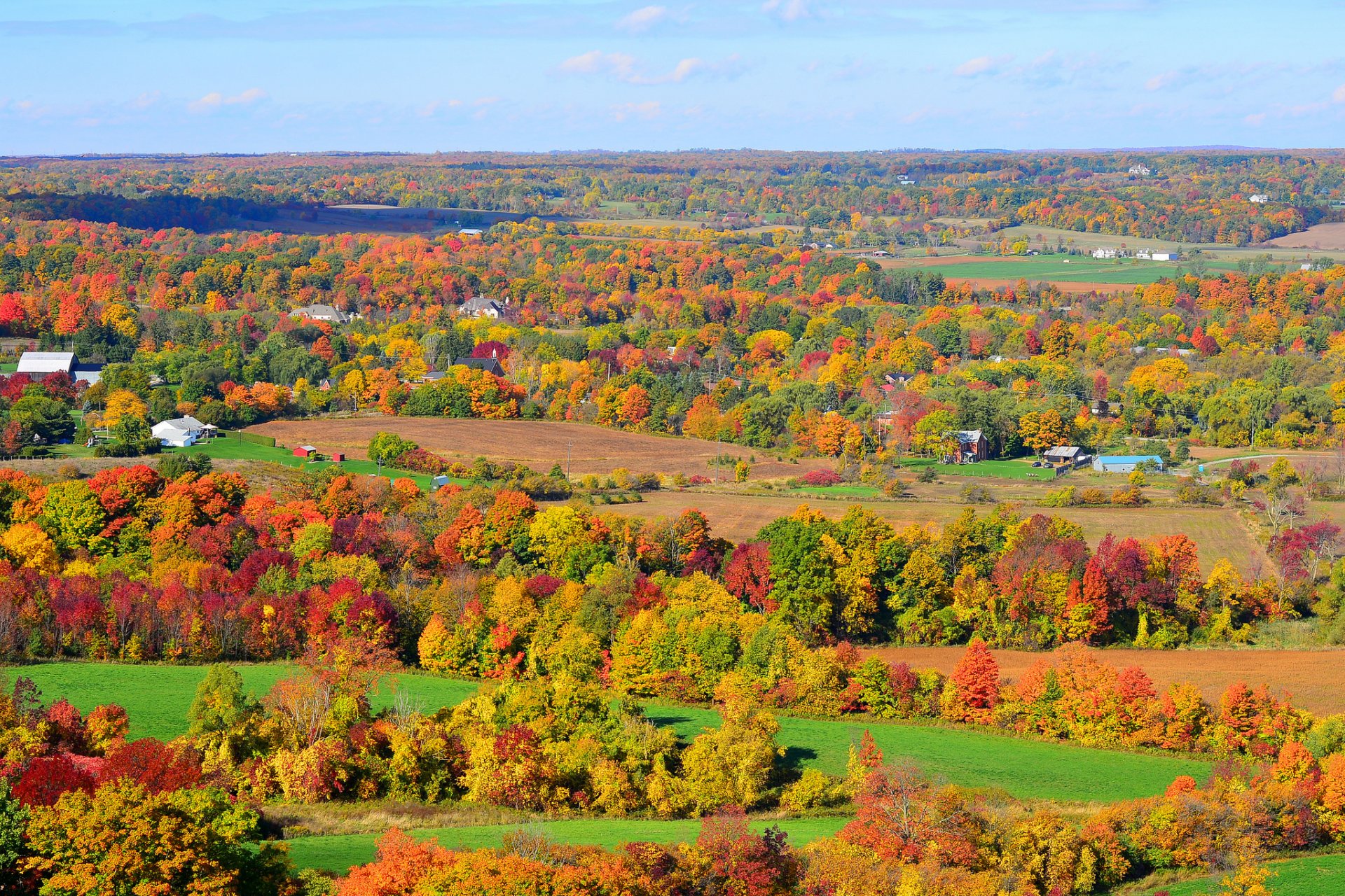 Fields and hills of Italy. Landscapes of Italy. The city is in a fog