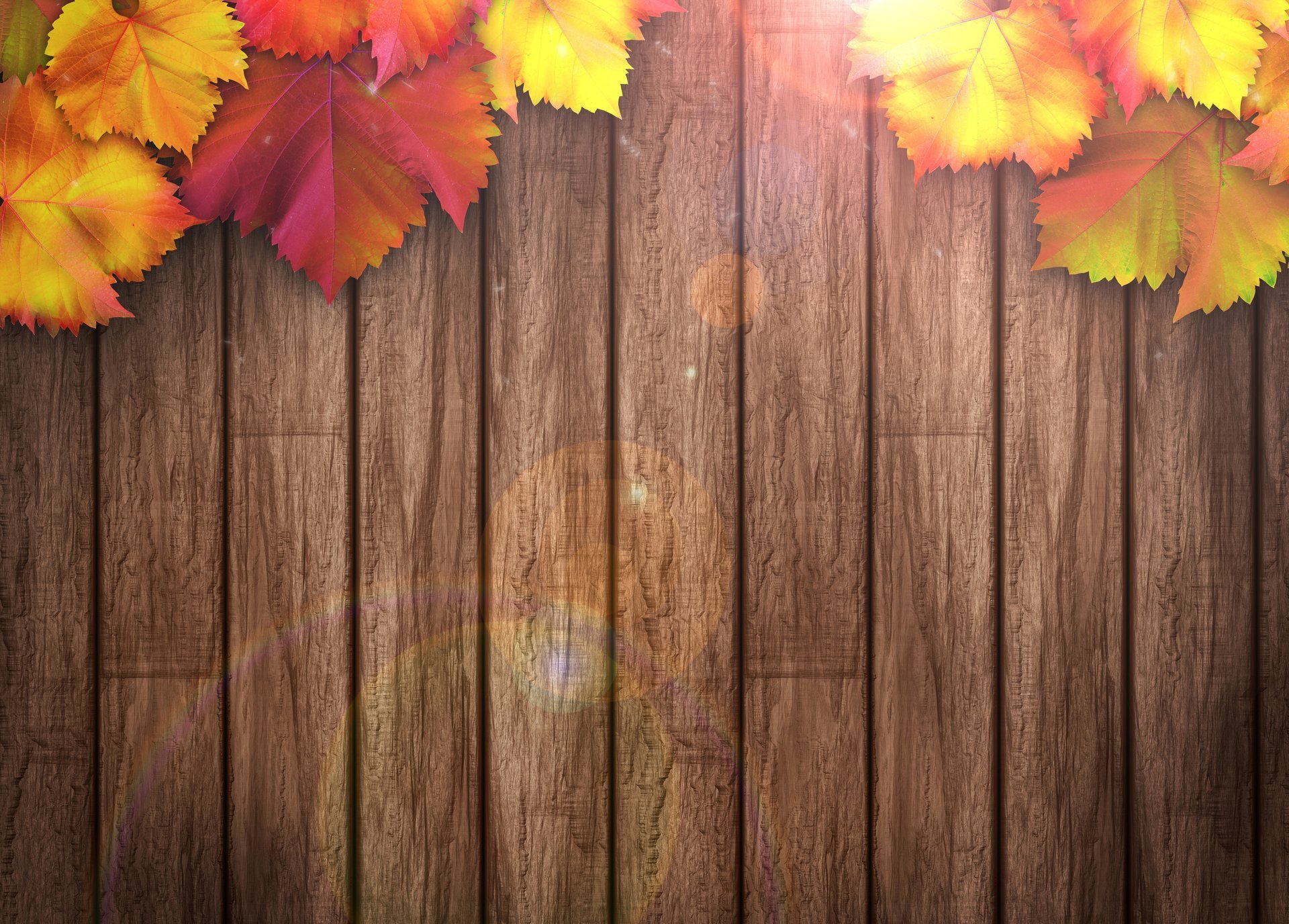 Autumn background: leaves on a wooden texture