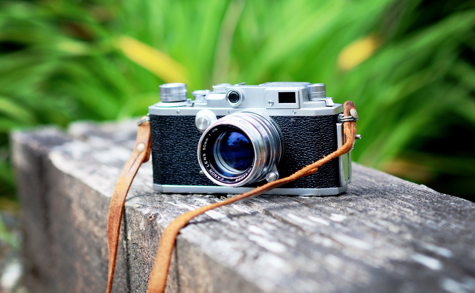 Black Canon camera on a wooden table