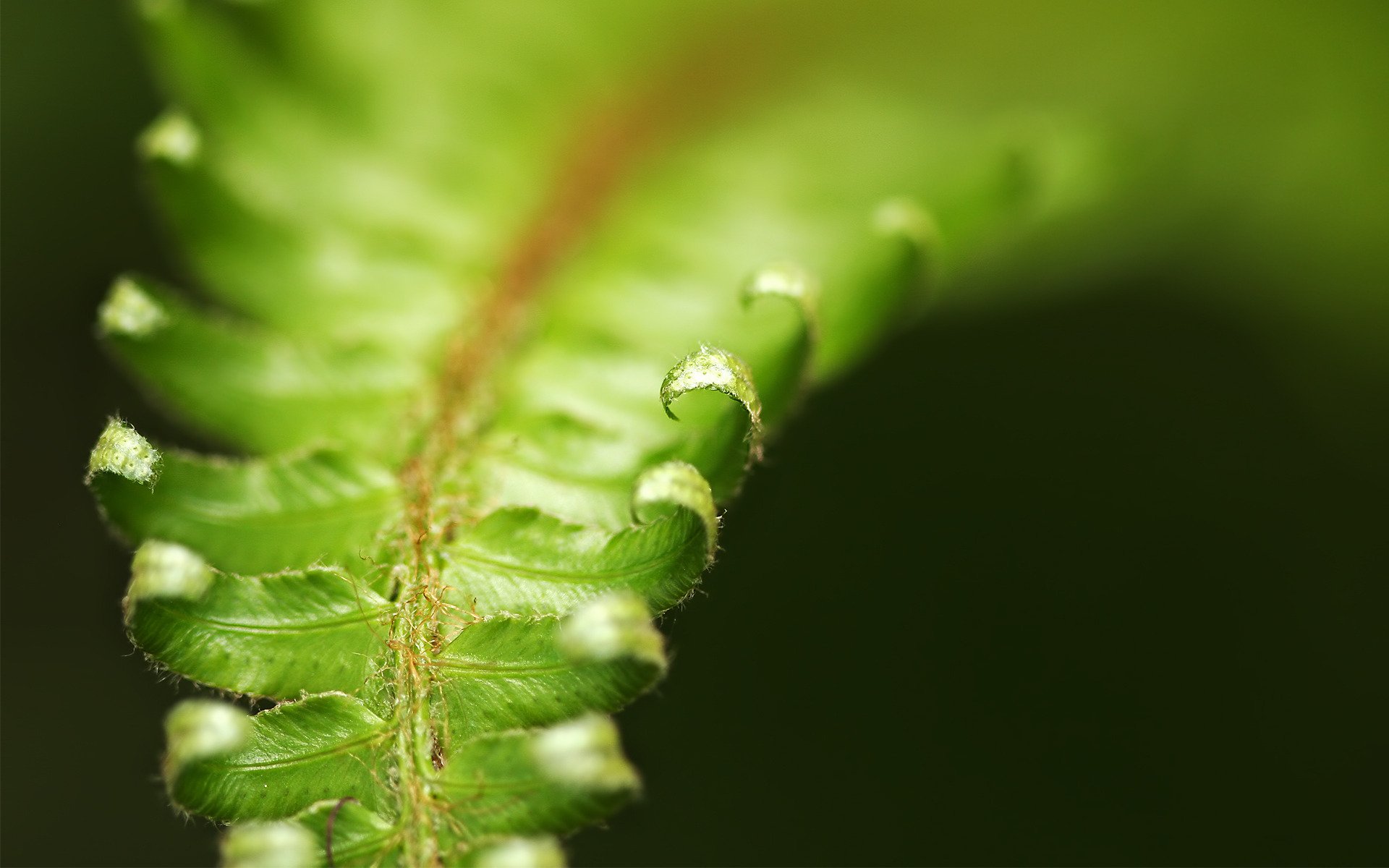 Green fern leaves bent macro photo