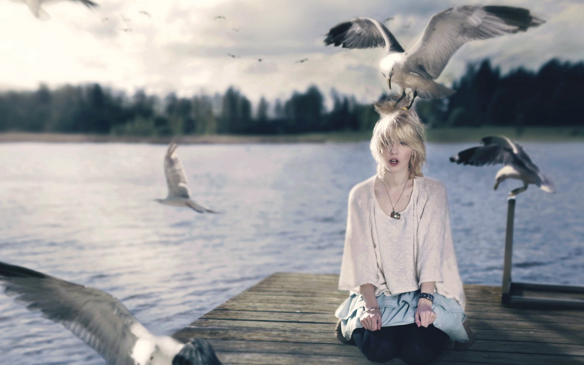 A lonely tree and birds flying away into the distanceA lonely tree and birds flying away into the distance