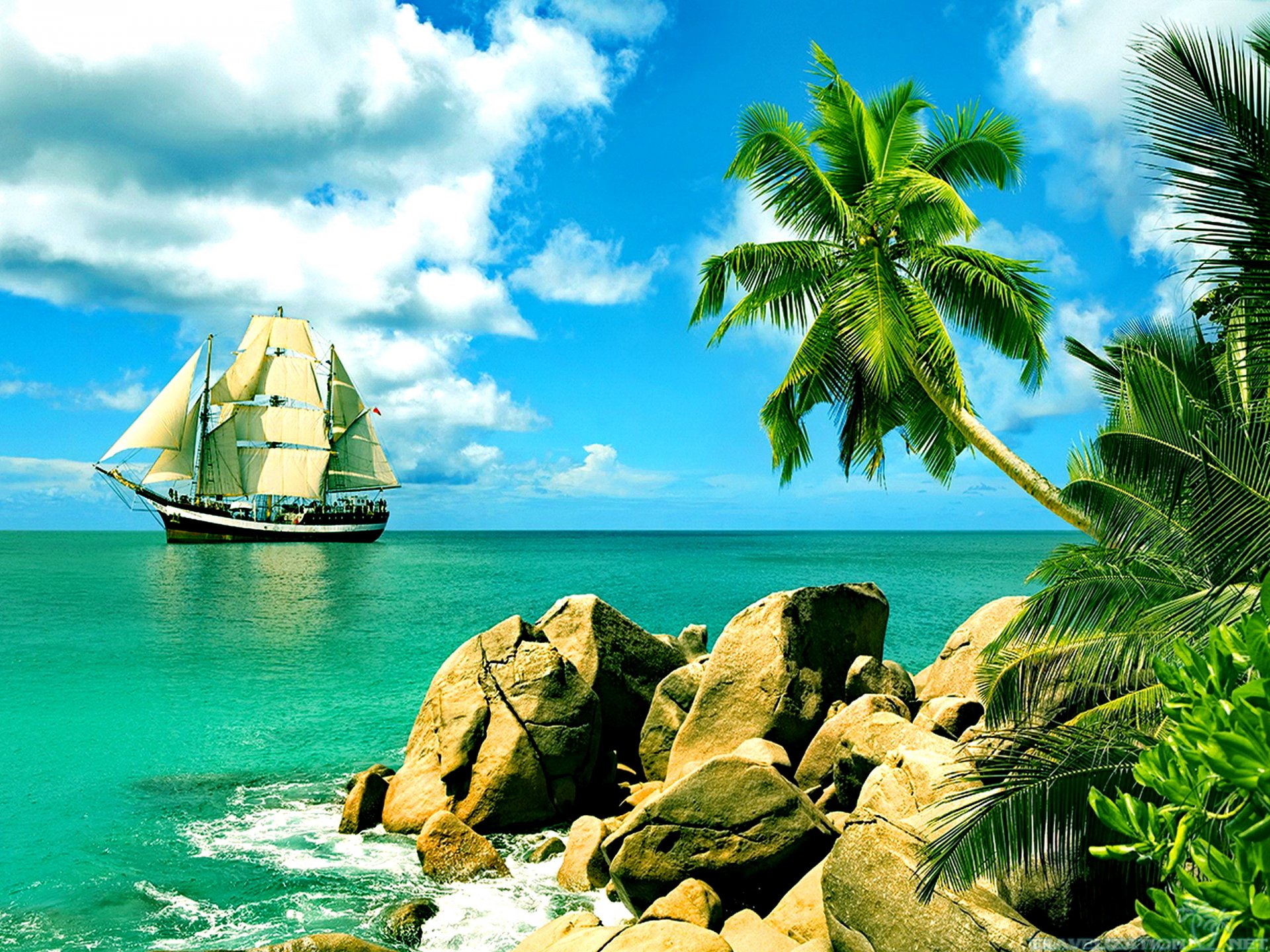 View of a boat with a white sail on the background of the evening sky through the archView of a boat with a white sail on the background of the evening sky through the arch