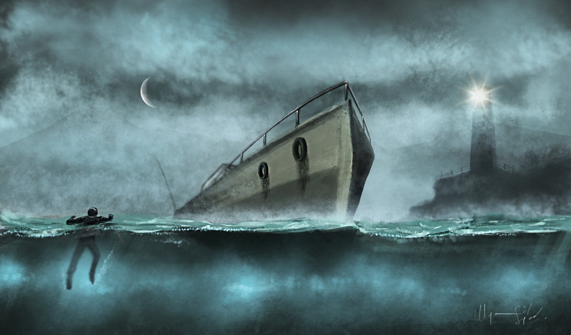 A man at sea, a lighthouse ship