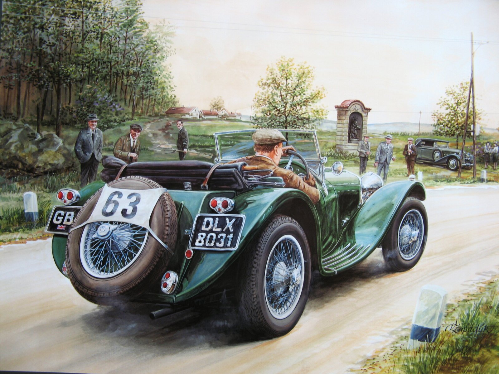 Drawing of a man in a car . Summer