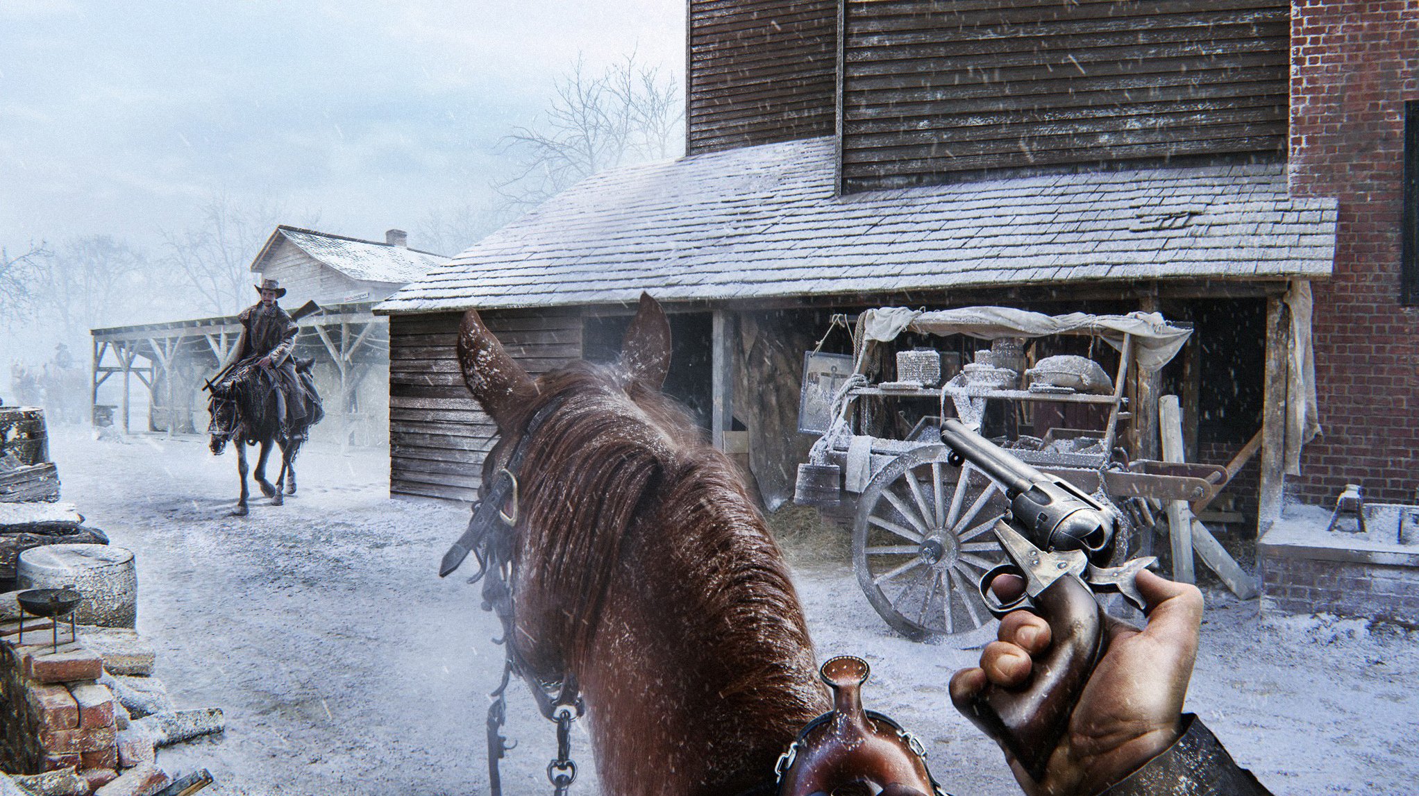 Art winter in the city a man with a revolver