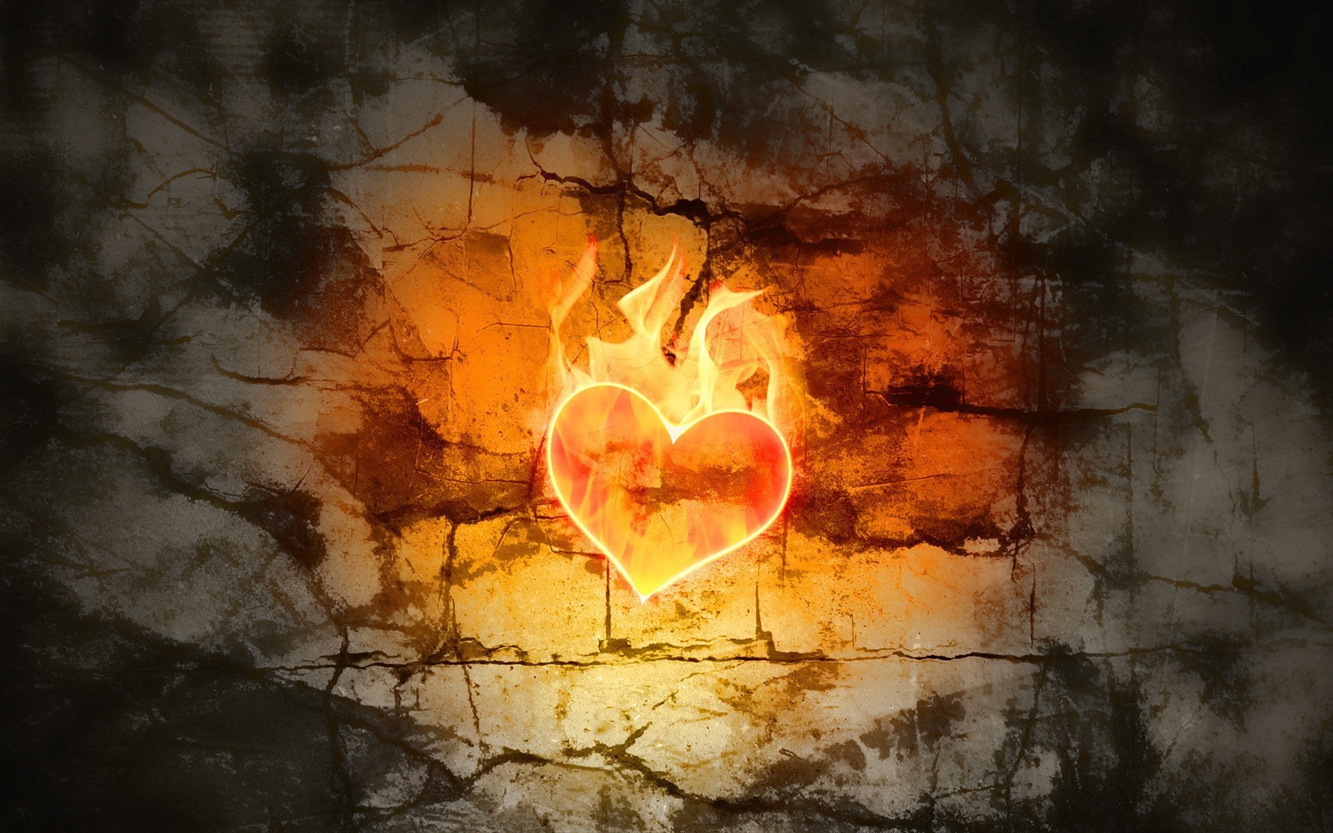 A fiery heart against a background of prickly grayness