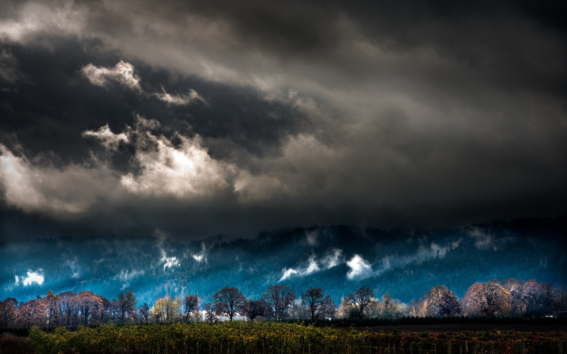 Landscape against a dark sky