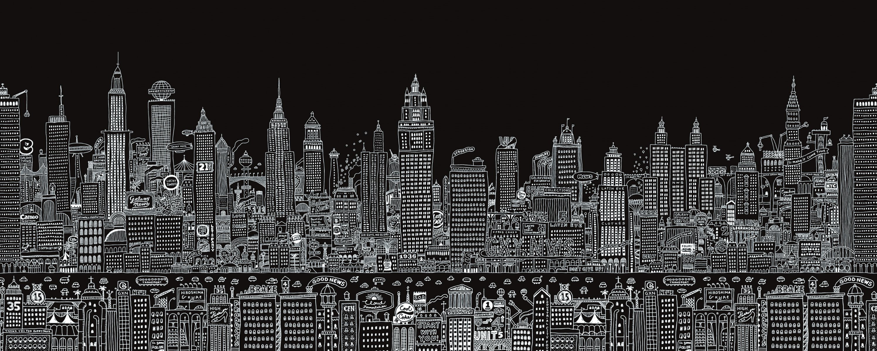 A girl in a black top on a red background with a white patternA girl in a black top on a red background with a white pattern