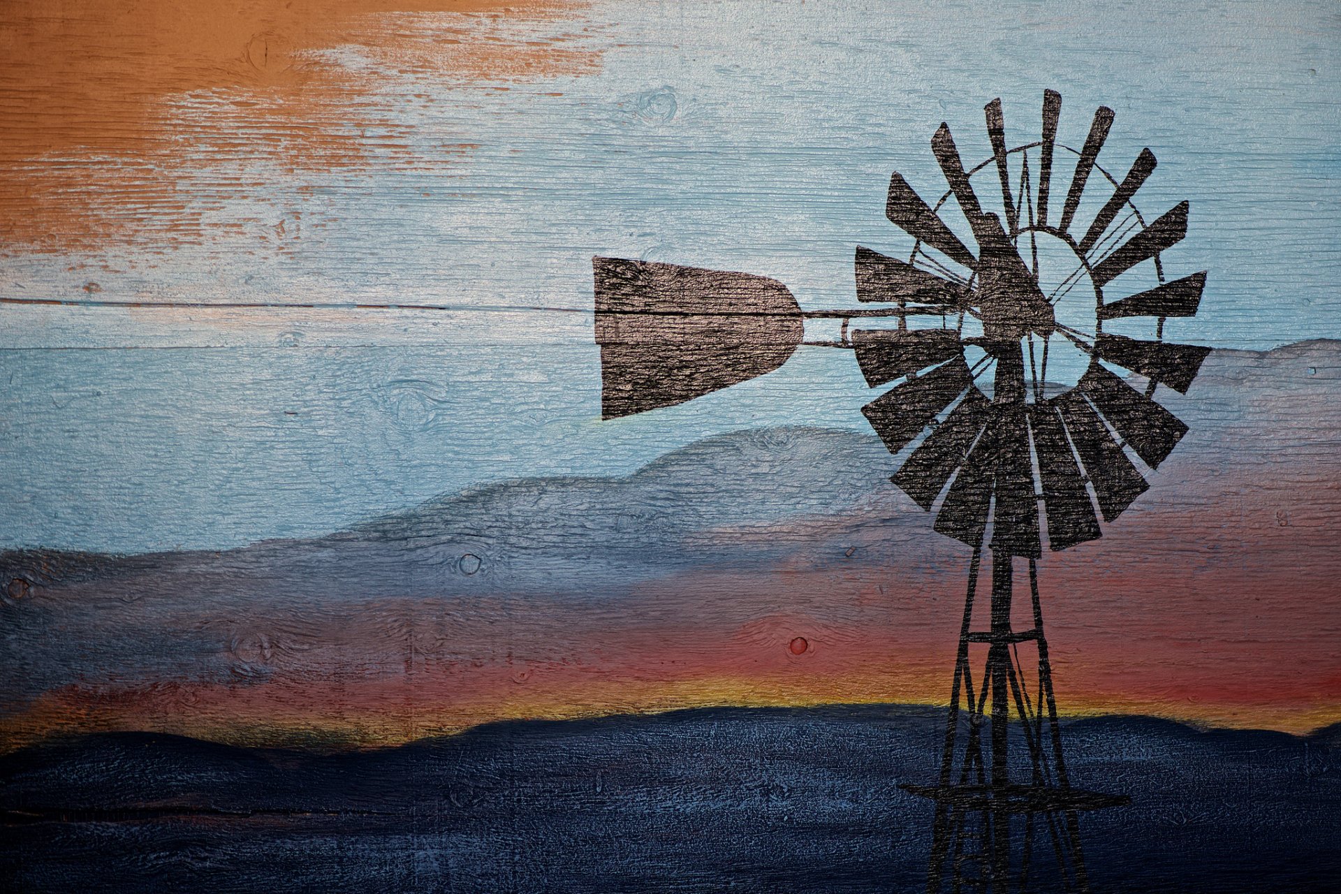 Mill on the background of bright mountains