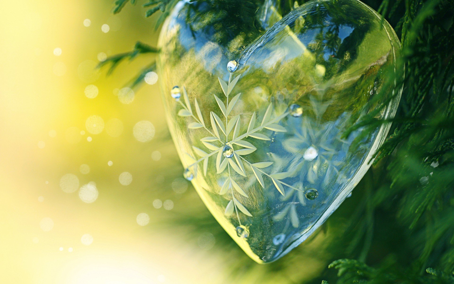 Glass balls in the shape of a heart and with the inscription "love" on paper.Glass balls in the shape of a heart and with the inscription "love" on paper.