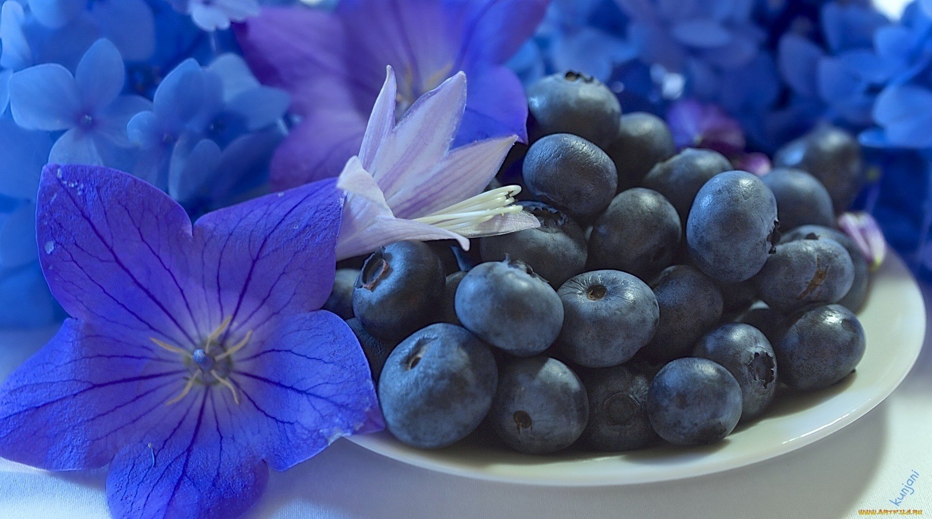 Blueberries with beautiful blue flowers