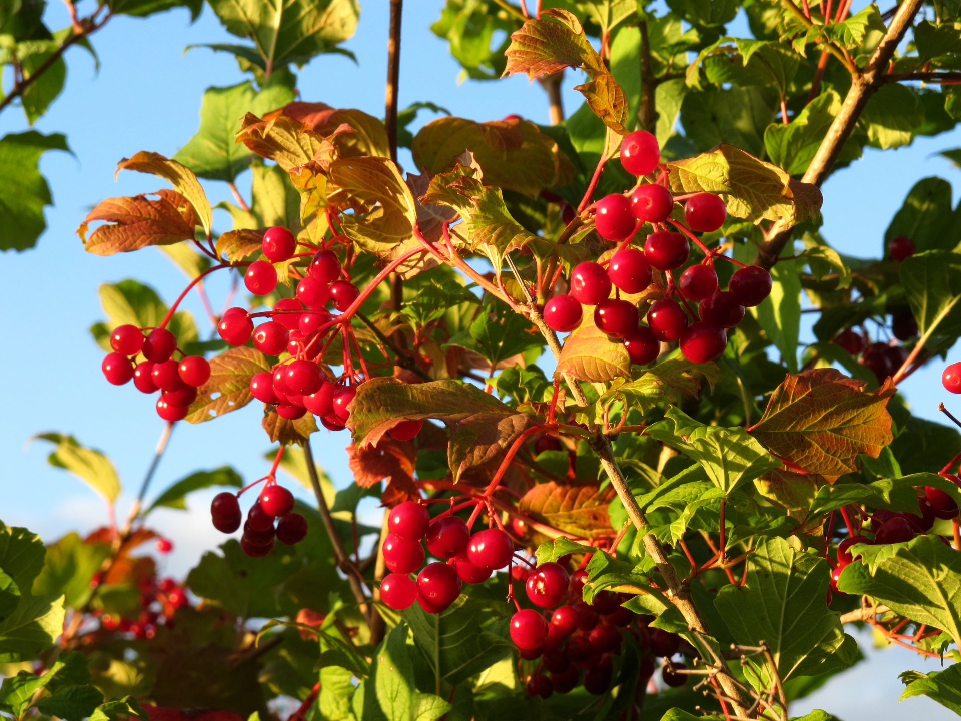 Red viburnum berries in autumn