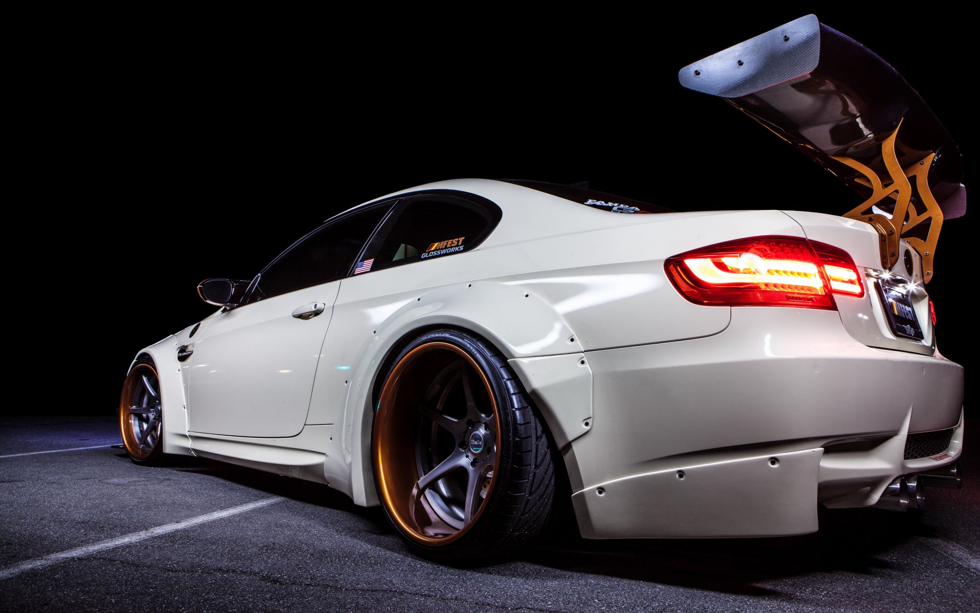 Red and blue bmw, m3 rear and side view