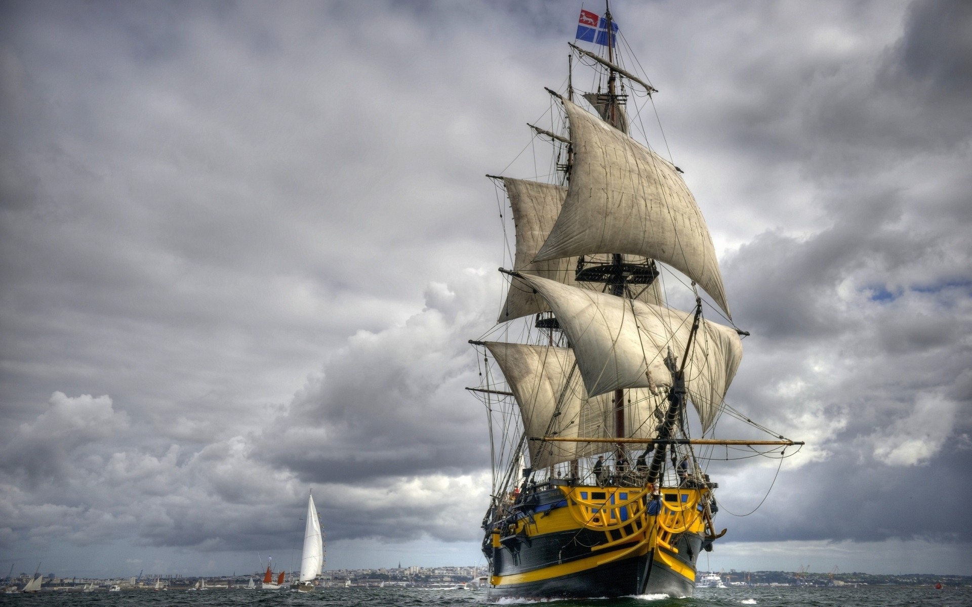 A warship at sea with a multicolored rainbow shadowA warship at sea with a multicolored rainbow shadow