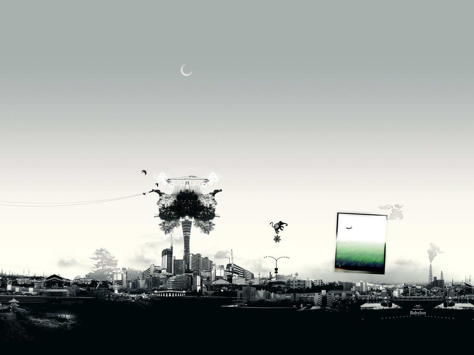 Black and white surreal picture of a girl in a long dressBlack and white surreal picture of a girl in a long dress