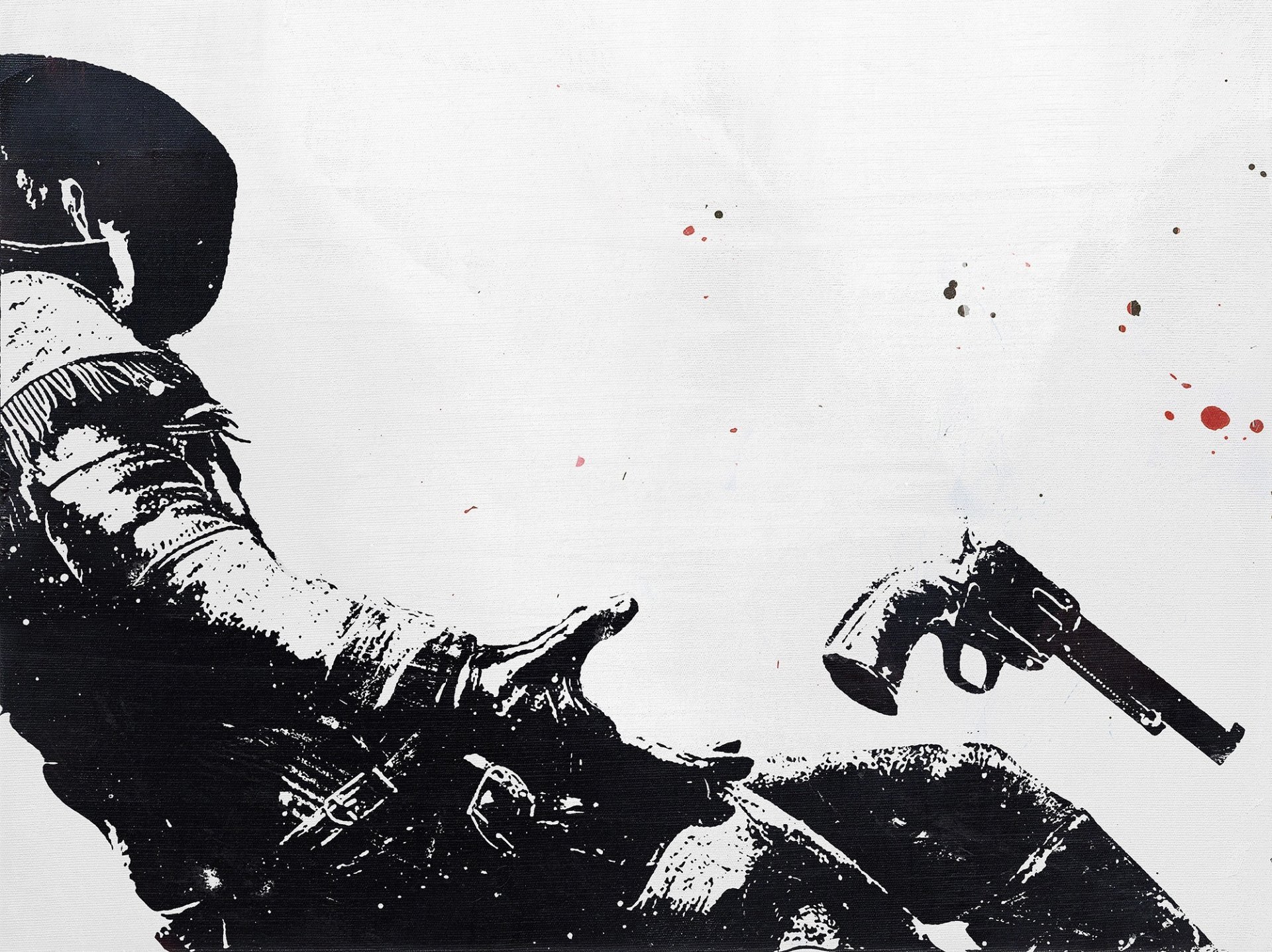 Black and white drawing of a cowboy with a revolverBlack and white drawing of a cowboy with a revolver