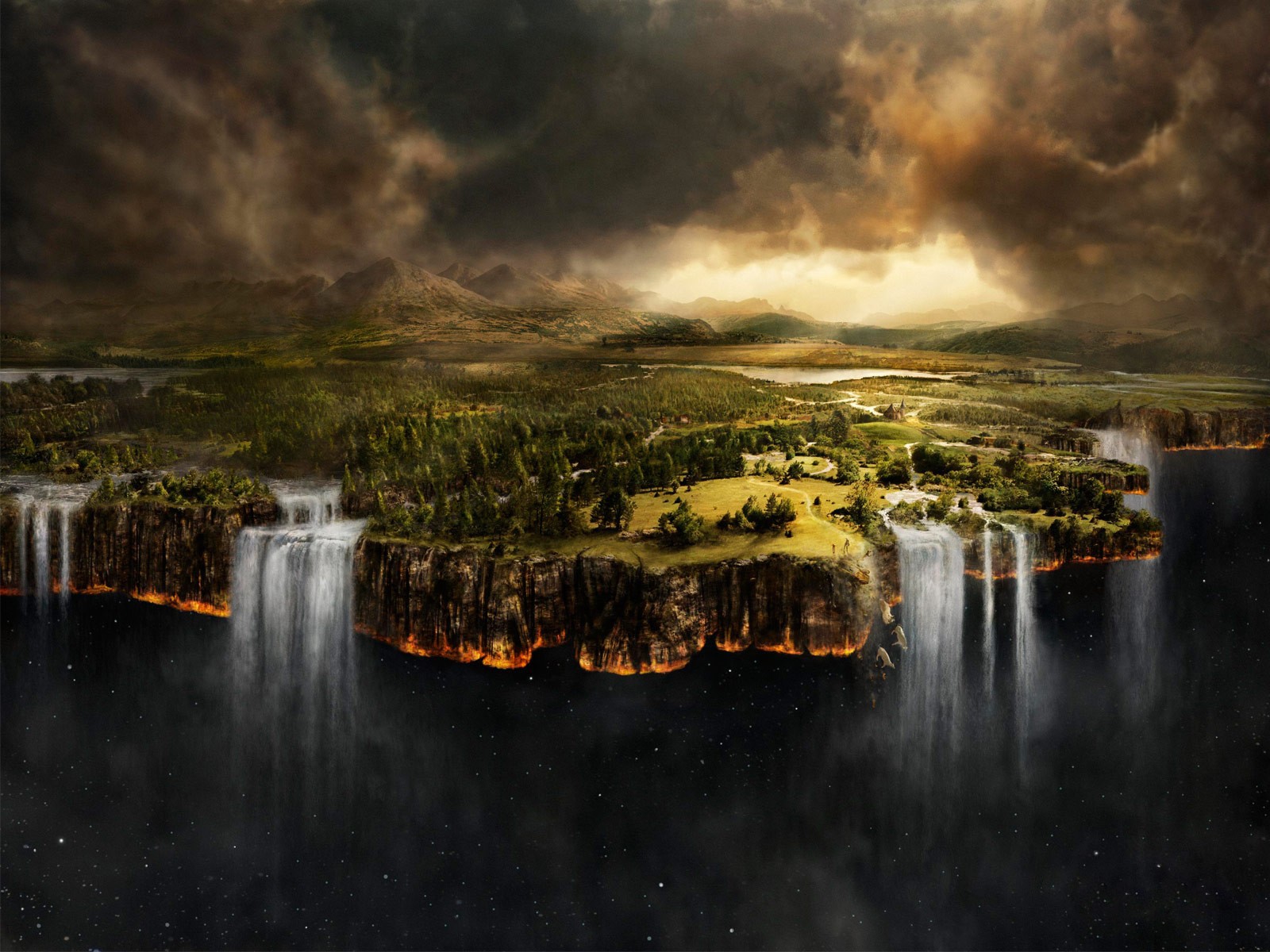 Waterfalls on the edge of the earth. Fantasy
